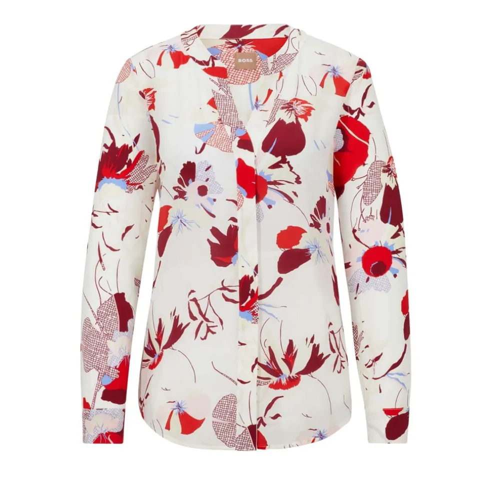 A modern regular-fit blouse in floral-print silk with a notch neckline and concealed closure by BOSS Womenswear.