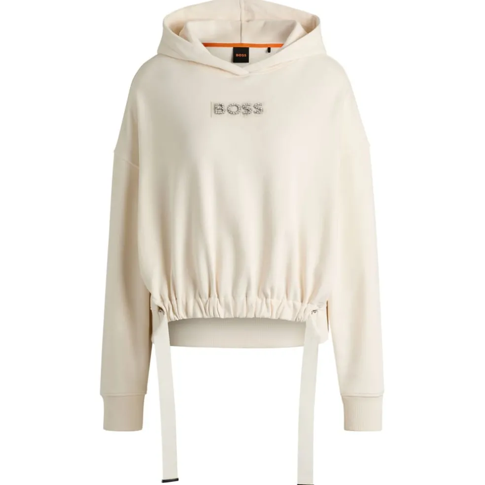 A signature hoodie by BOSS, with adjustable tapes at the hem. This layer is crafted in French terry and trimmed with a crystal-studded logo.This product is partly made with organic cotton.
