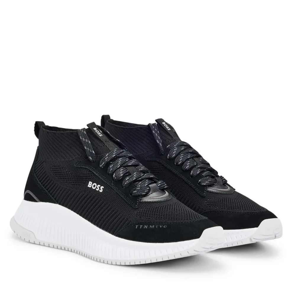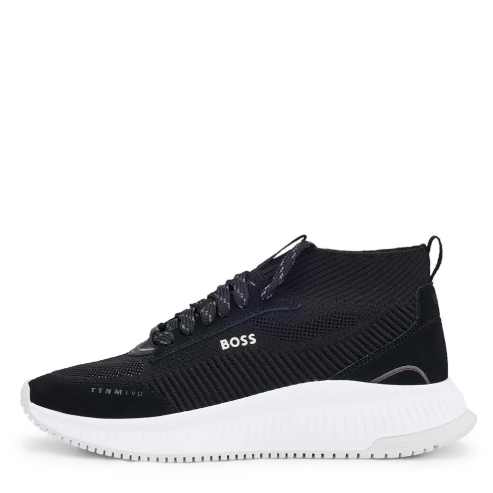 – The two-tone colourway delivers an excellent foundation to style these women’s sneakers into any ensemble, making them a versatile addition to your collection. BOSS branding adorns the sides, tongues and heel counters to ensure instant brand recognition. Whether strolling through city streets or meeting friends for brunch, BOSS’ Fishbone Sock Trainers exude refinement and luxury with every step.