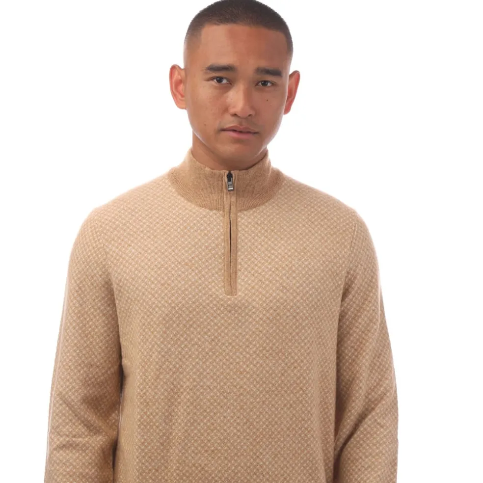 Boss H-Eltorino Quarter-Zip Sweater in Beige