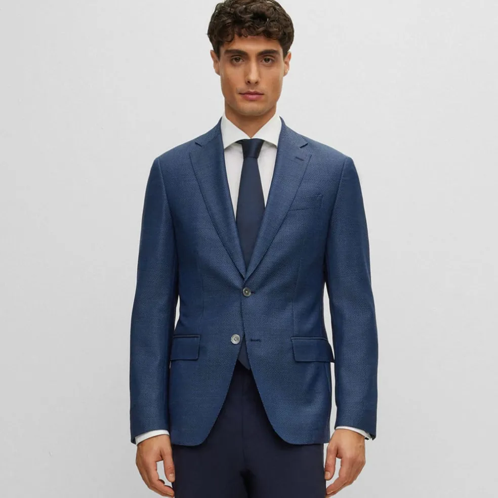 A single-breasted jacket by BOSS Menswear, cut to a slim fit in wool woven with a twill structure.