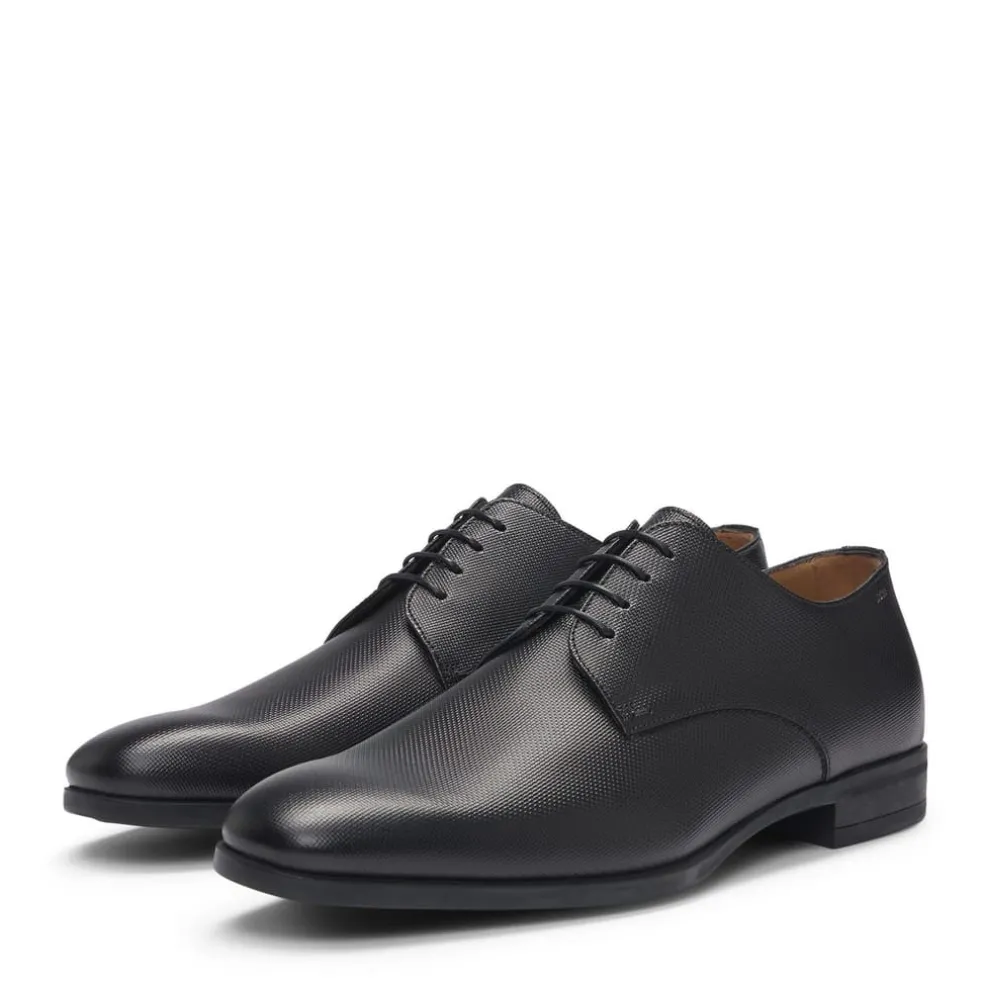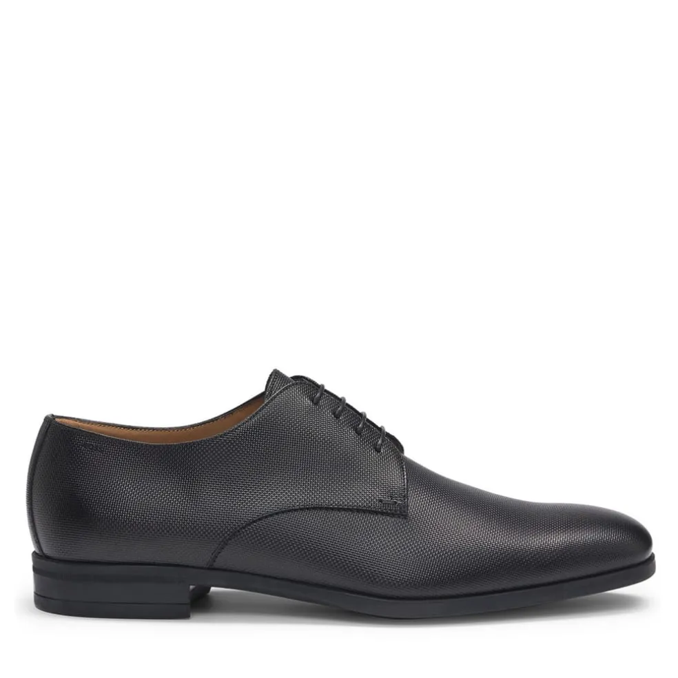 Timeless Derby shoes by BOSS, crafted in Italy from structured leather and fitted with a padded insole for elevated comfort. A minimum of 60% of the leather used to make this product has been sourced from certified tanneries.