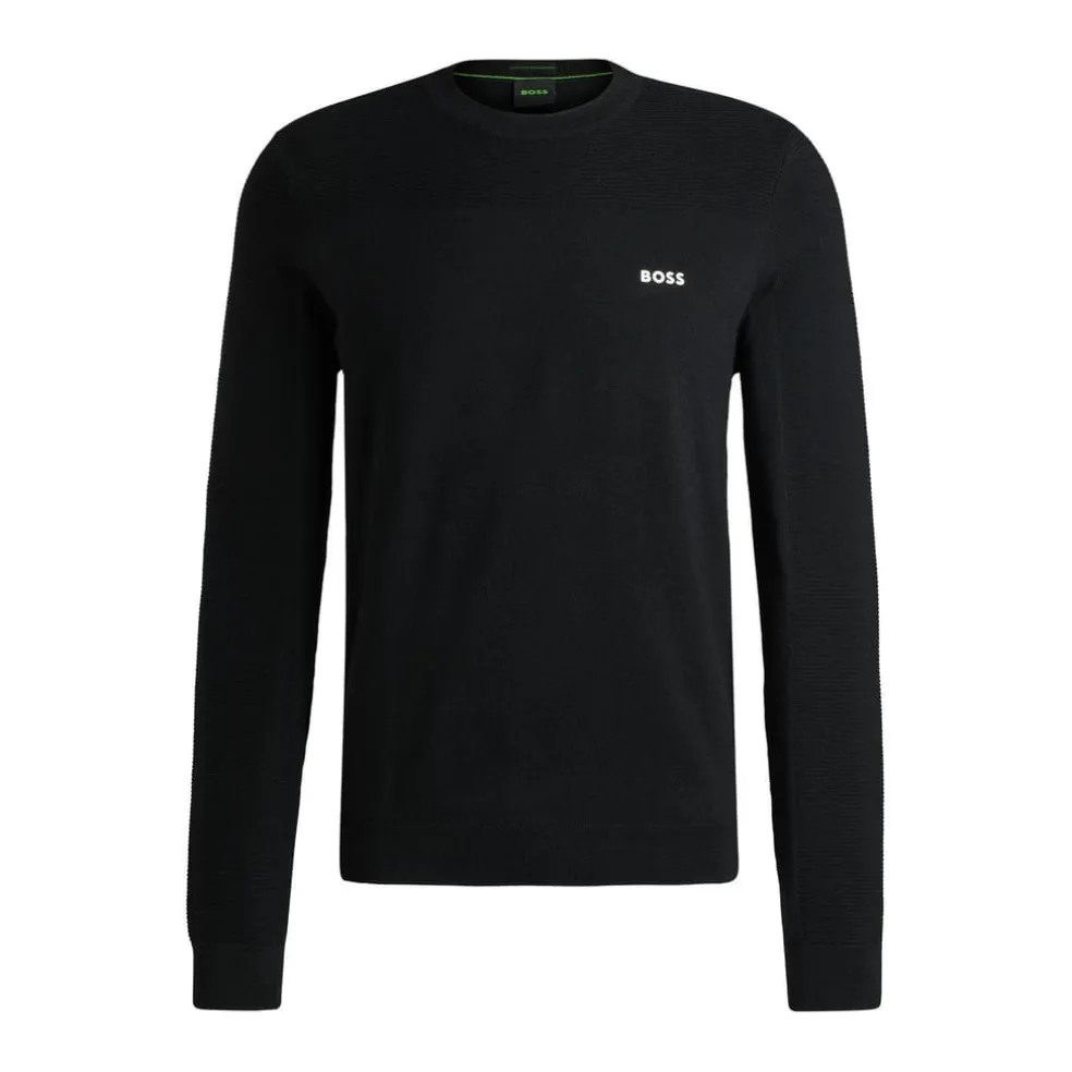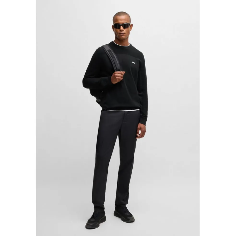 A regular-fit logo sweater in moisture-managing and thermo-regulating material blended with virgin wool by BOSS Menswear.