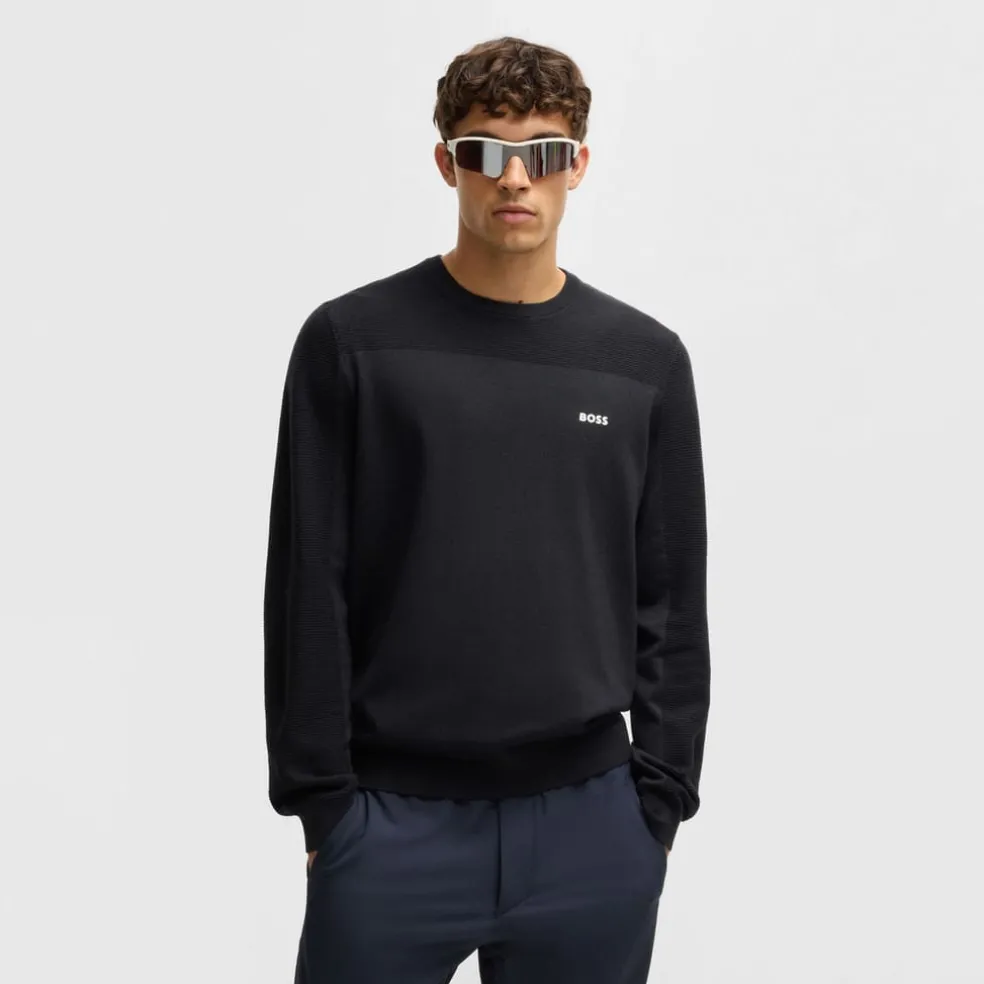 A regular-fit logo sweater in moisture-managing and thermo-regulating material blended with virgin wool by BOSS Menswear.