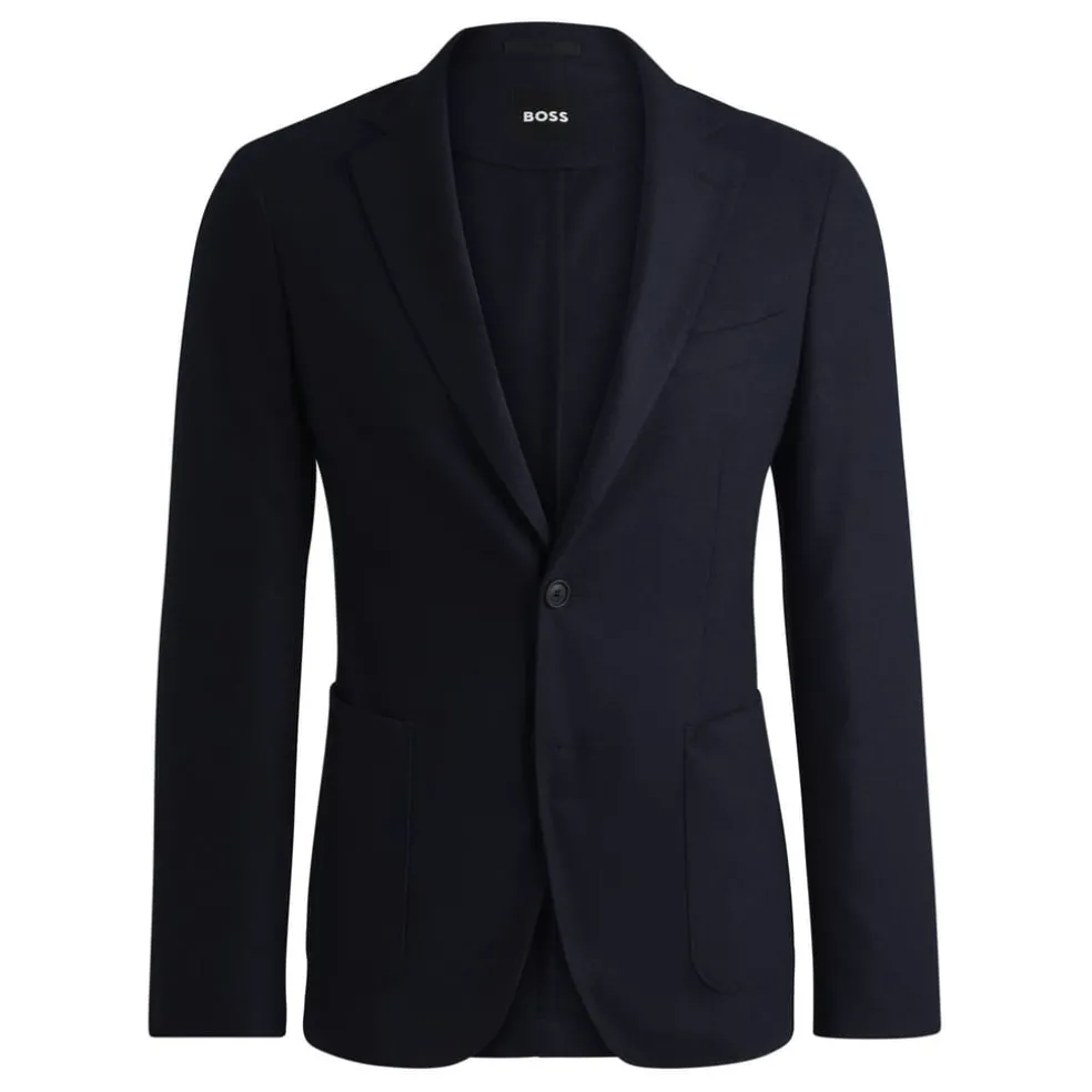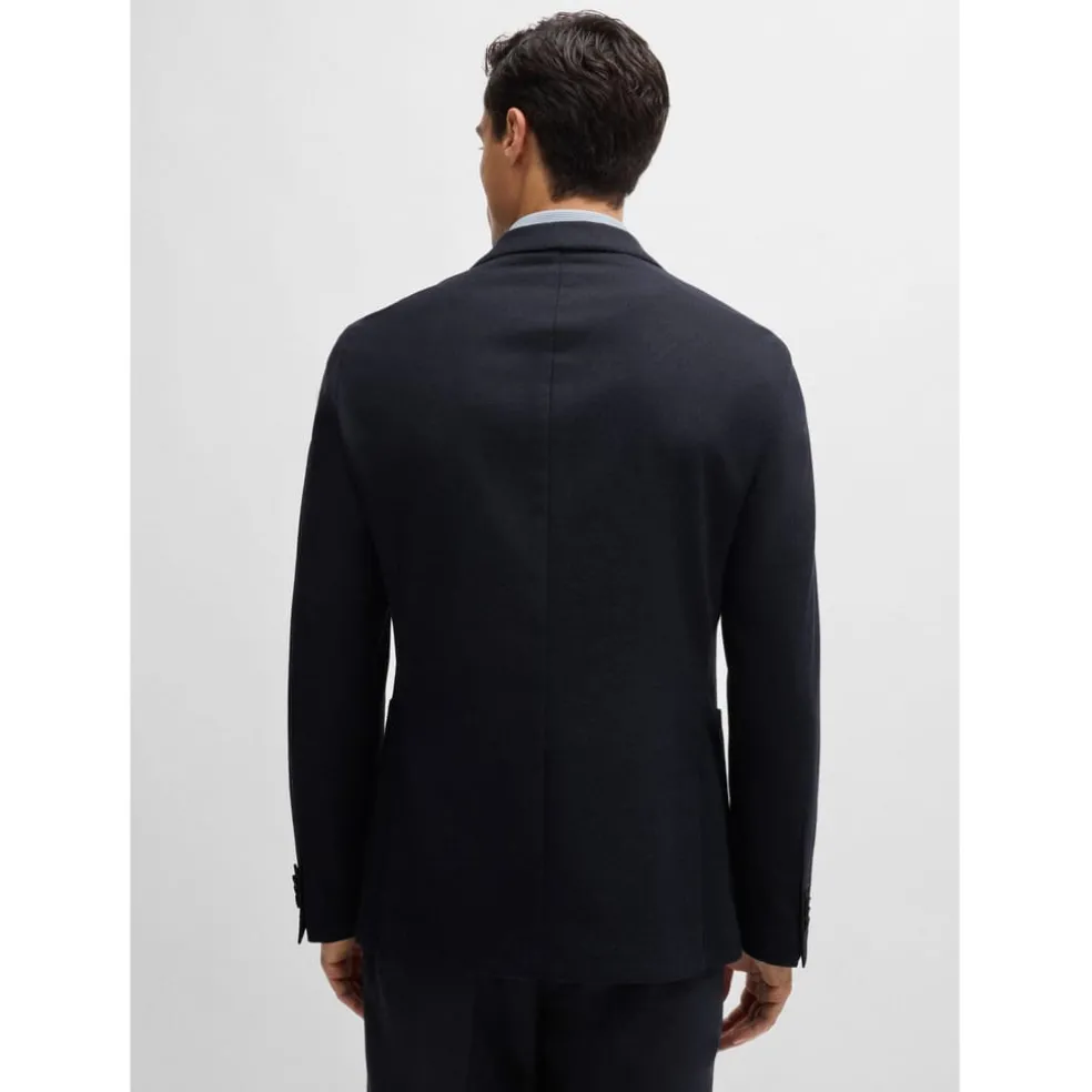 An unconstructed jacket cut to a defined fit by BOSS. This single-breasted piece is crafted in brushed flannel blended with wool and stretch.