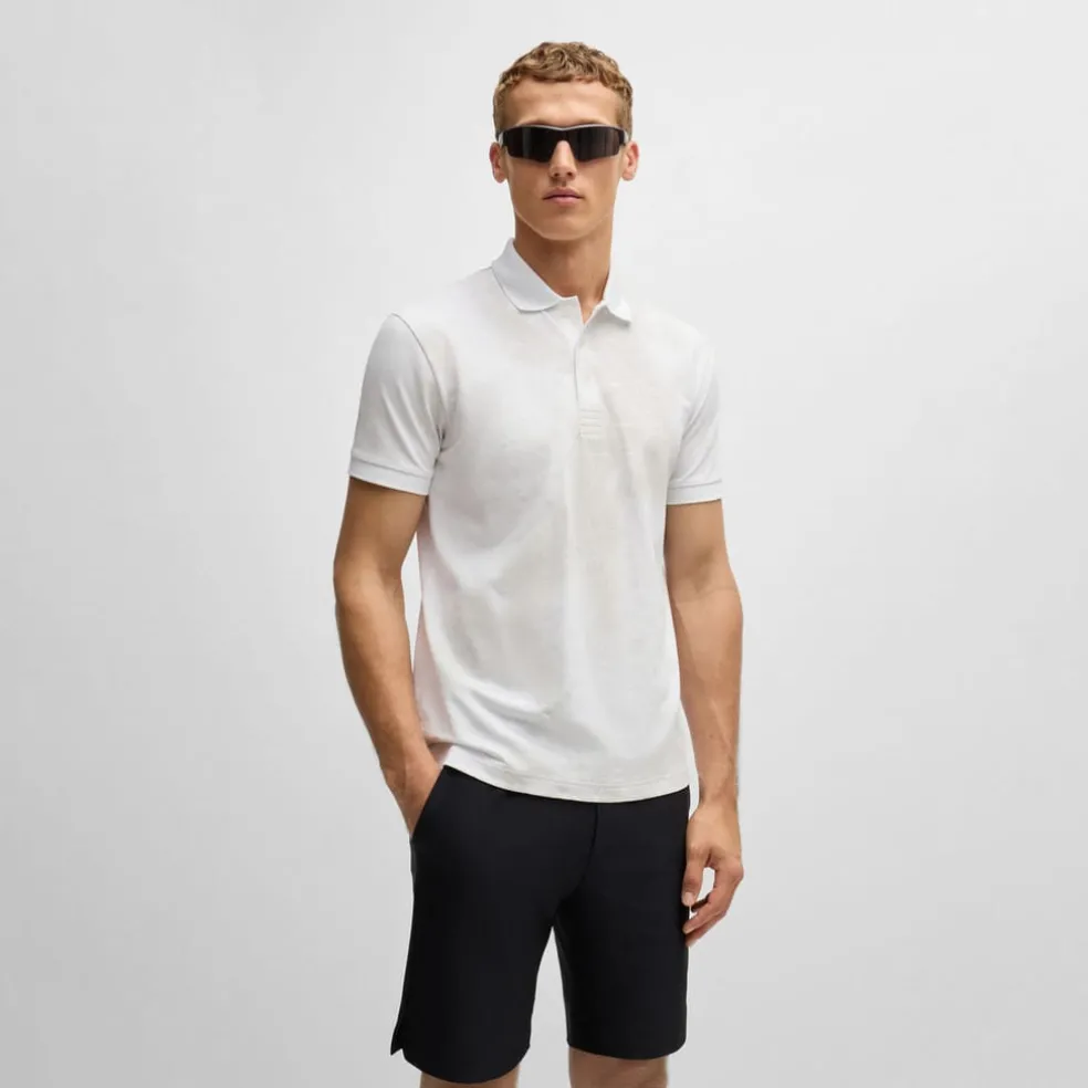 A regular-fit polo shirt by BOSS, offering odour control and UV protection. Crafted in a stretch-cotton blend, this top features decorative reflective artwork.