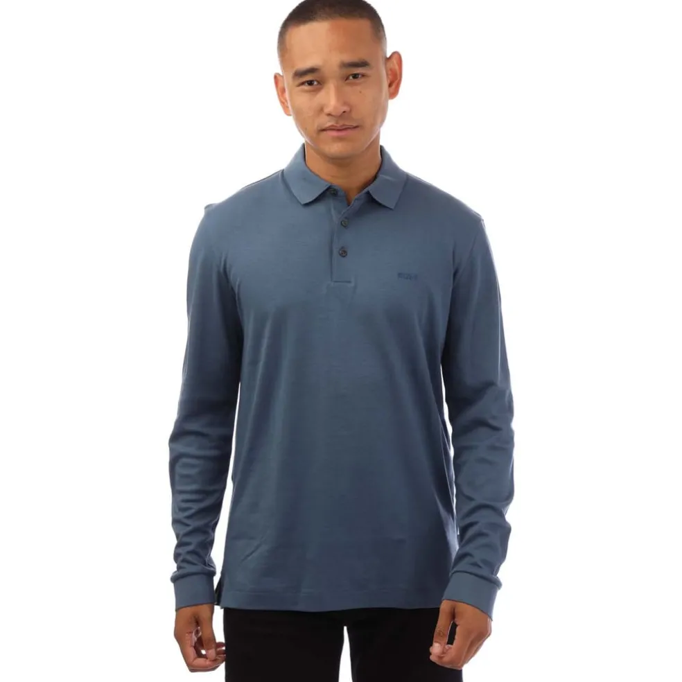 A signature polo shirt with long sleeves by BOSS Menswear. Cut to a straight fit in interlock material, this elevated top features a tonal embroidered logo.
