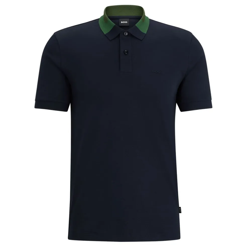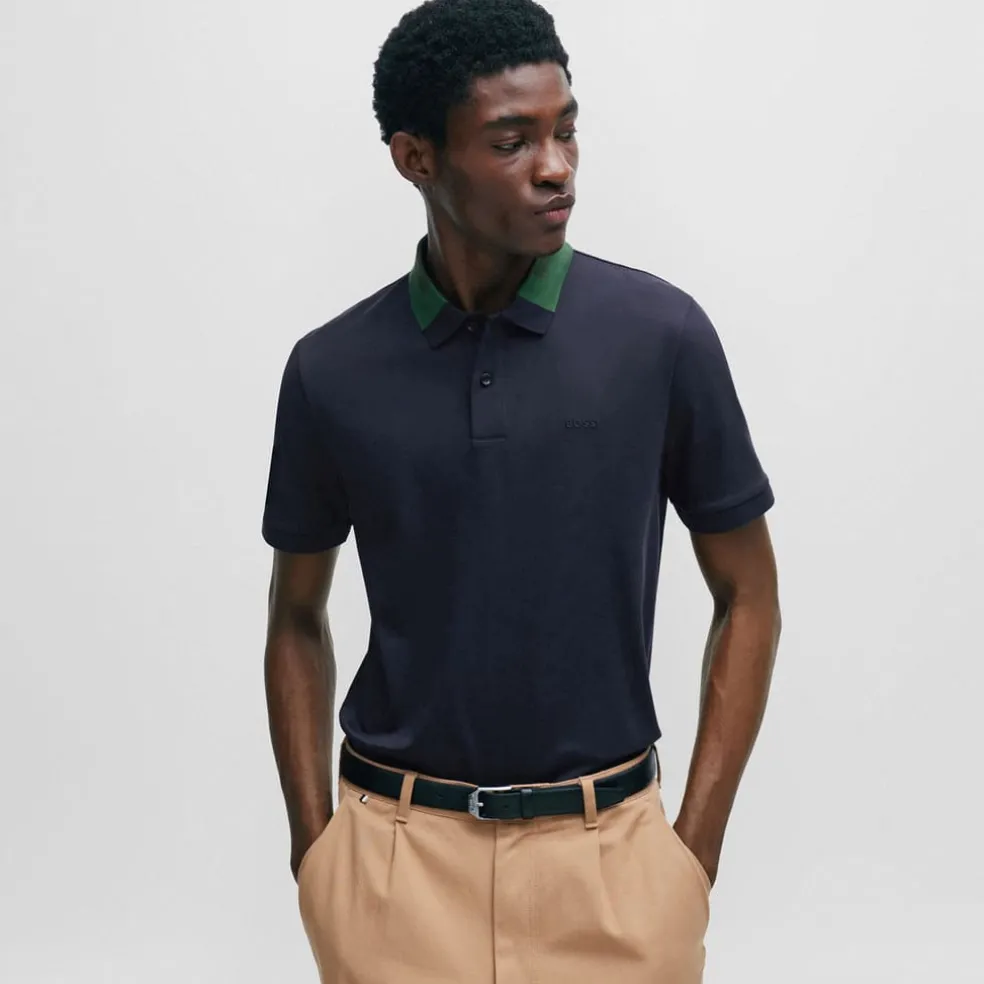 A signature polo shirt by BOSS Menswear. Featuring a logo at the left chest, this short-sleeved polo shirt is crafted in soft interlock cotton for everyday comfort. This piece is cut to a clean and contemporary slim fit.