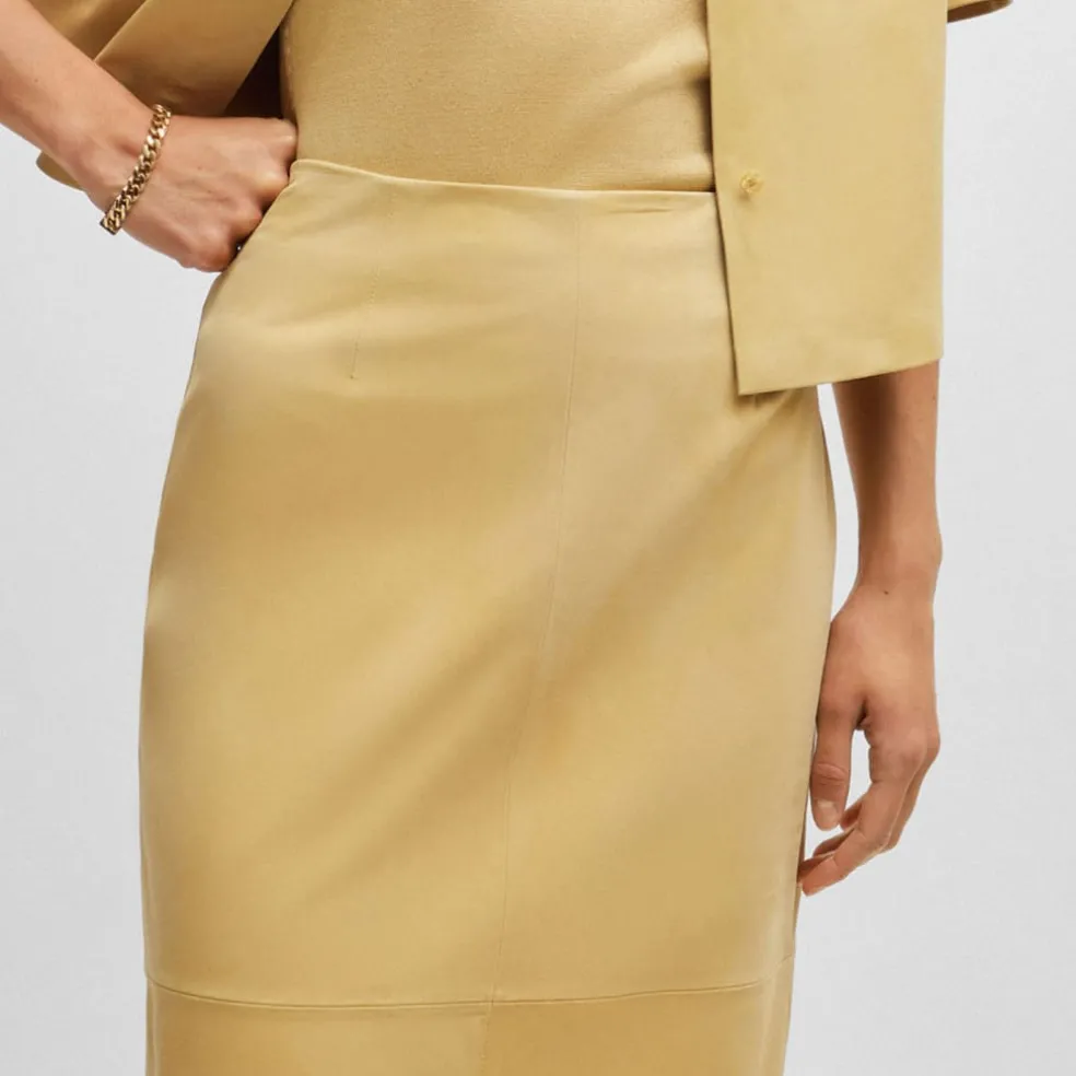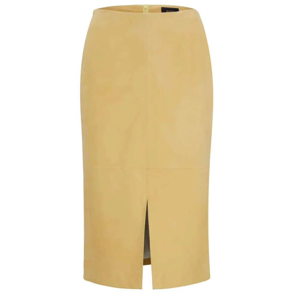 A distinctive pencil skirt by BOSS Womenswear, crafted in rich nubuck leather with a front slit and soft lining.