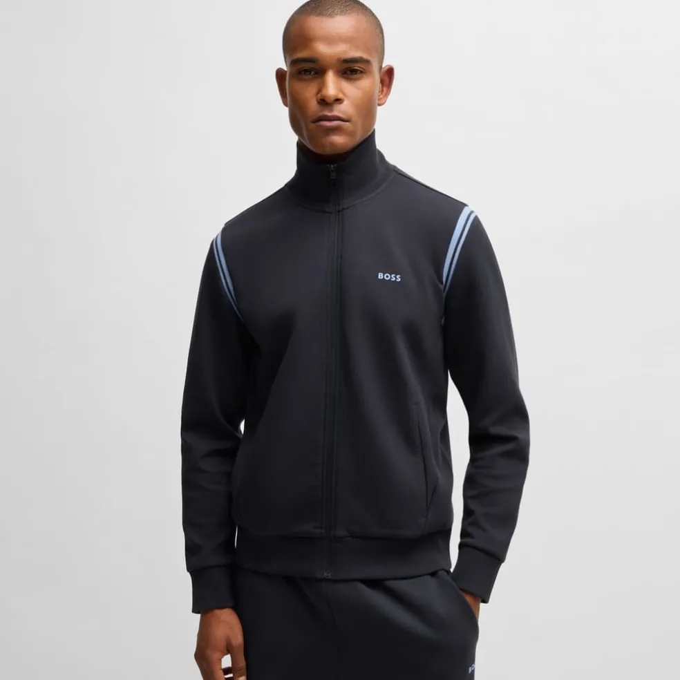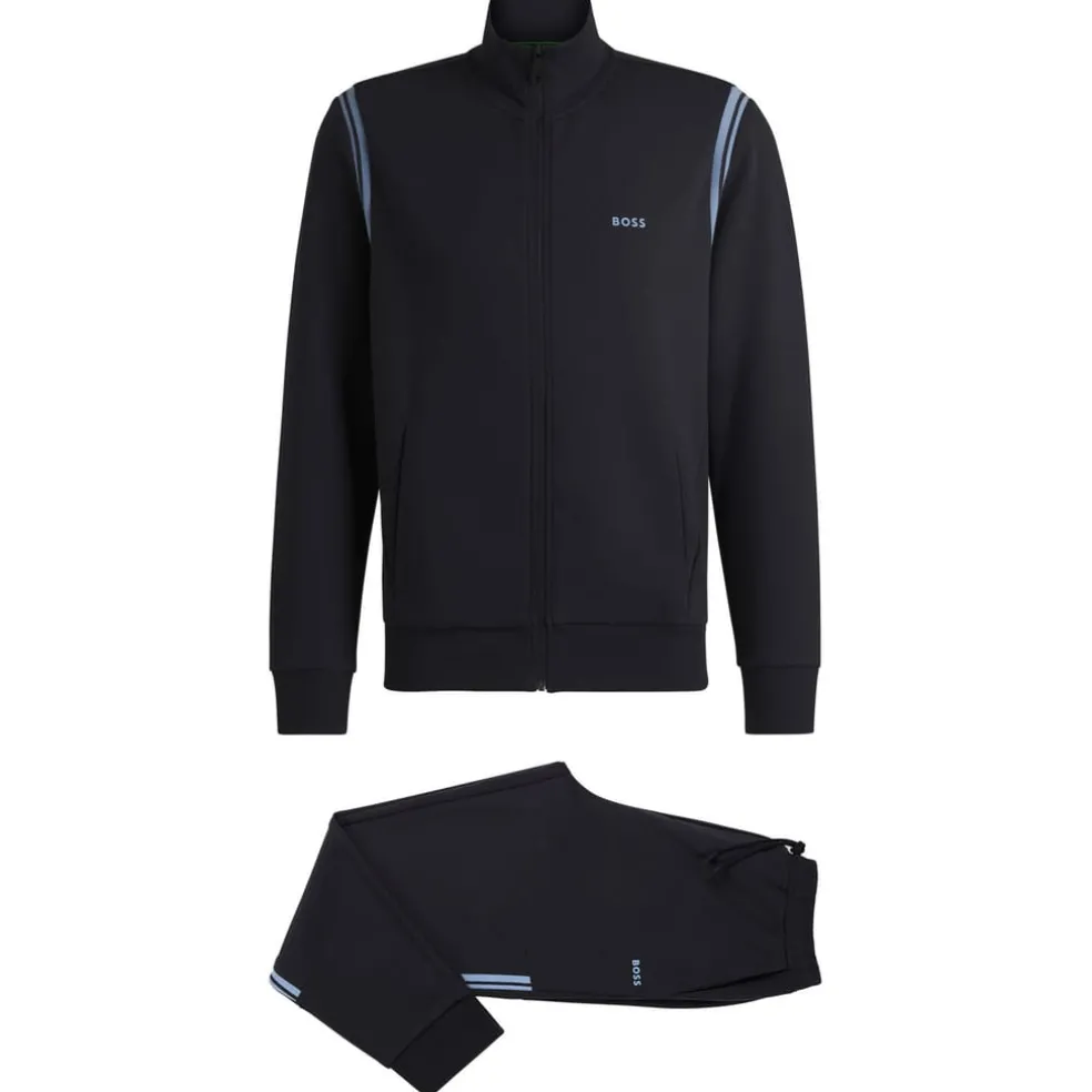 A signature tracksuit set with branding and stripe inserts by BOSS Menswear. This set is crafted in cotton with stretch for easy movement in all directions.
