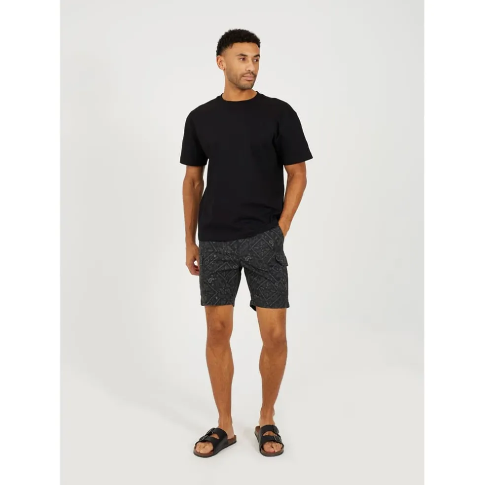 Brave Soul Print Cargo Shorts in Grey
