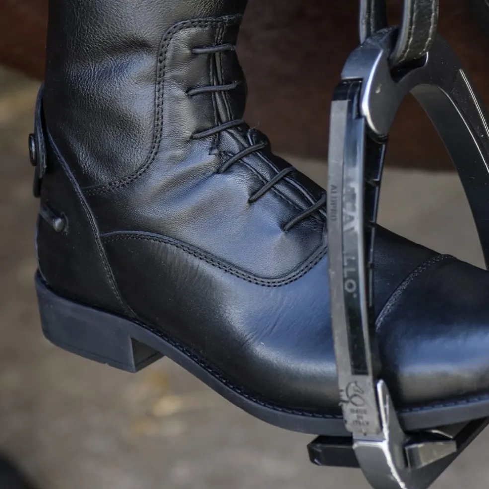 – • Genuine leather patch on inside leg aids grip and helps the boot retain it’s shape in storage