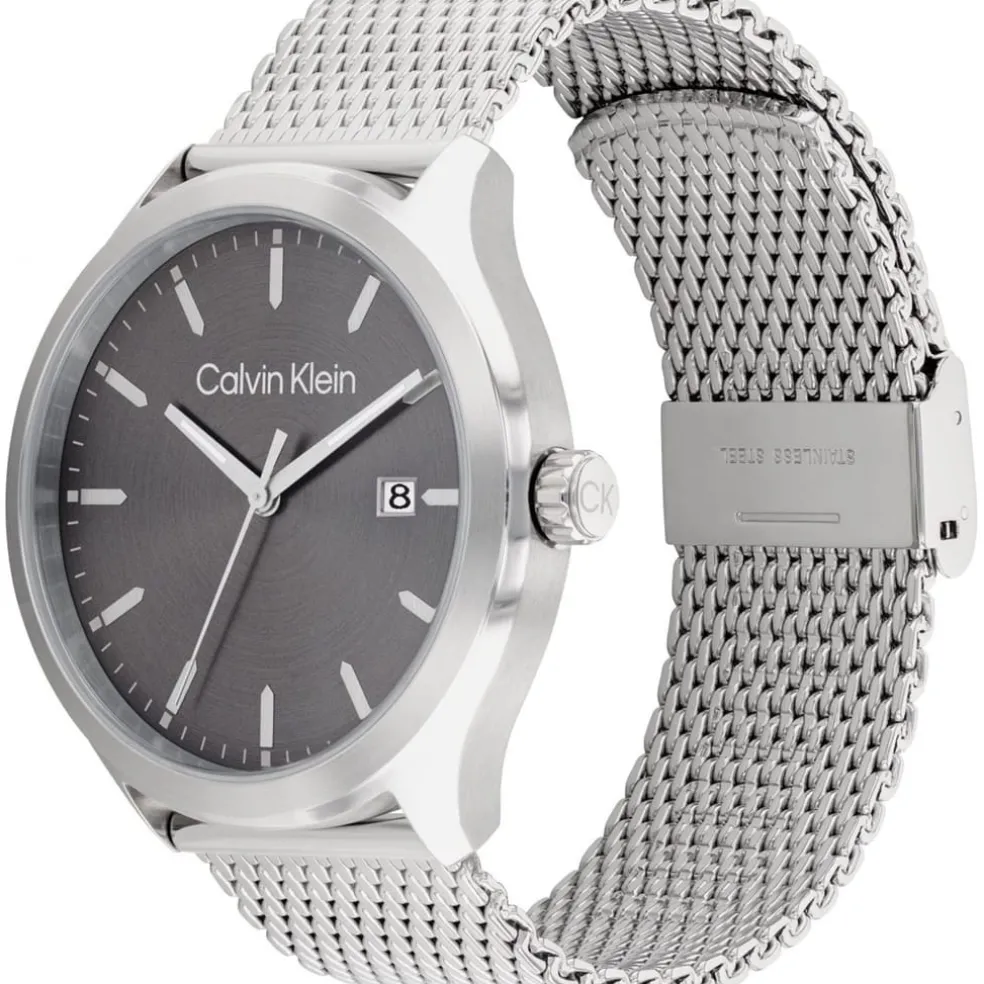 Calvin Klein watches and jewellery, features timeless, minimalist designs that highlight Calvin Klein’s globally-recognized aesthetic. Make this new metropolitan inspired watch part of your wardrobe to elevate your style this season.- 43mm- 3H- Architectural shaped links- Stainless steel sculped case- Grey IP radial brushed dial- Stainless steel mesh bracelet- 3 ATM