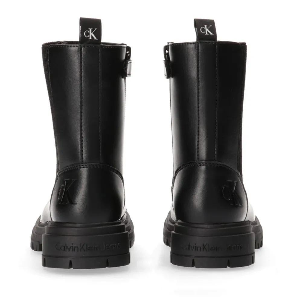 Discover the refined elegance of Calvin Klein Jeans boots, crafted from premium leather. These shoes feature a classic round toe, offering a timeless addition to your wardrobe. Perfectly blending style and functionality, these boots are designed for those who appreciate quality craftsmanship and understated sophistication.