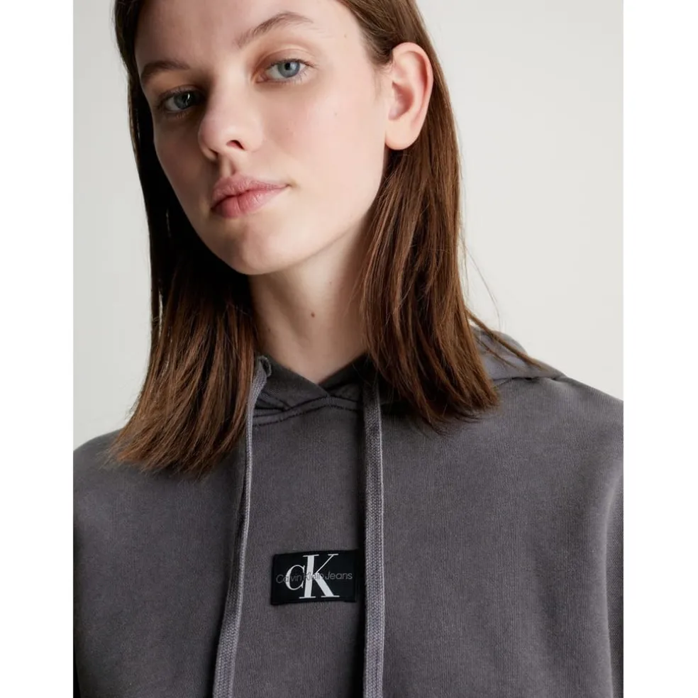 Calvin Klein Jeans Cropped Hooded Relaxed Fit Sweatshirt in Grey