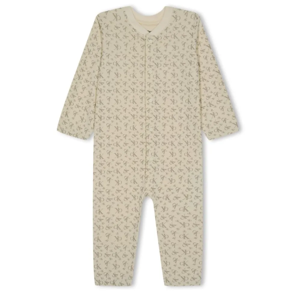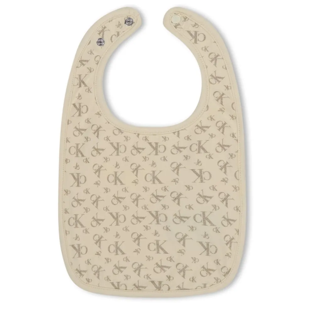 – This set includes a sleepsuit, hat, and bib, providing everything your baby needs for a cosy and fashionable lifestyle. The sleepsuit features long sleeves and a convenient button fastening on the front, making it effortless to dress your little one. With elastane hems, it offers a perfect fit and ensures maximum comfort for your baby’s movements. The button closure on the bib adds both practicality and style to this charming set. To complete the design, an all-over metallic logo print adorns the sleepsuit, hat, and bib, showcasing the iconic Calvin Klein Jeans logo in a mesmerizing fashion. Composition: 93% Cotton 7% Elastane. Machine washable, follow care instructions.