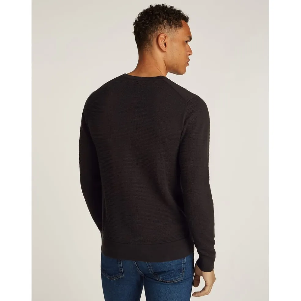 Calvin Klein Texture Crew Neck Regular Fit Sweater in Black