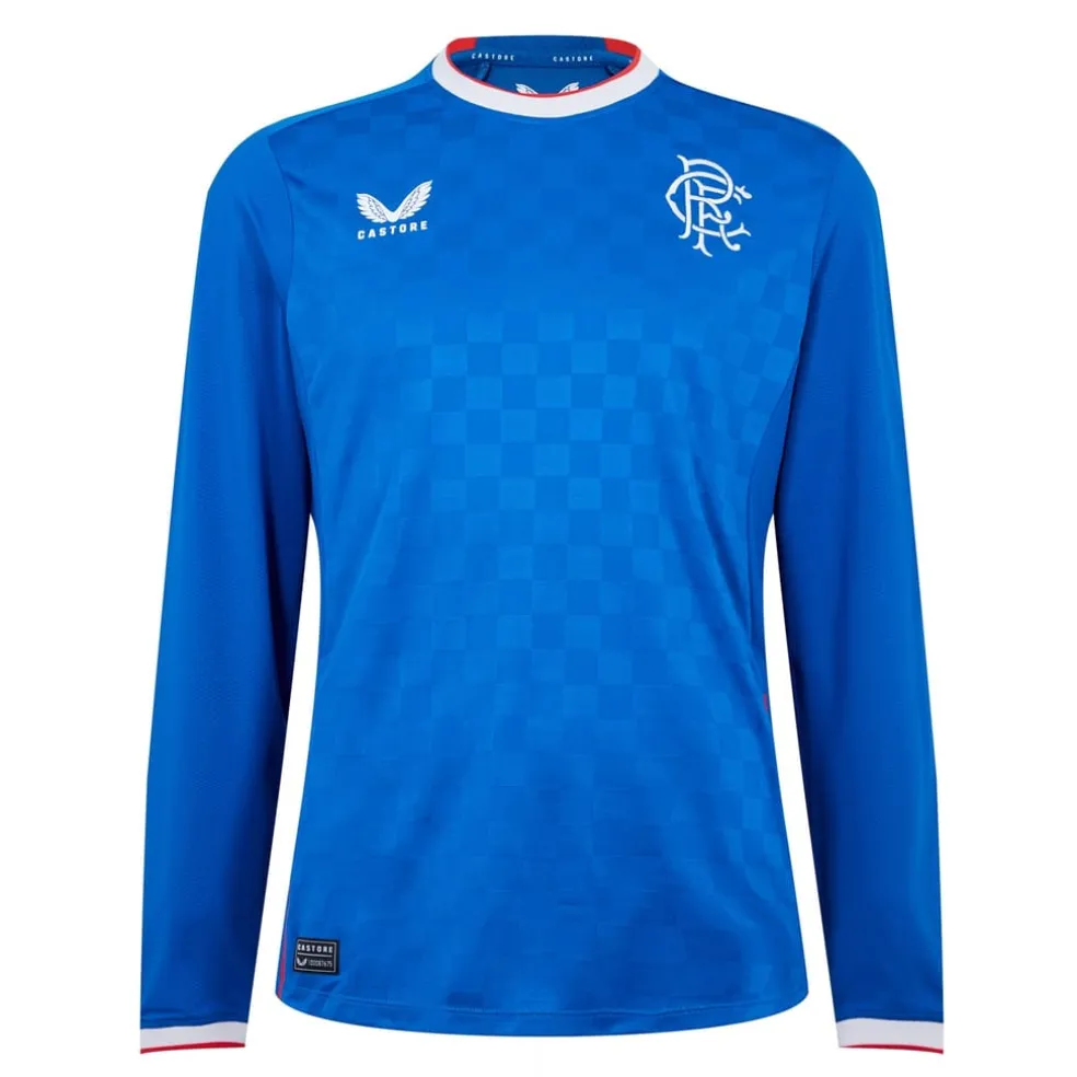 This Castore rugby T-shirt, ideal for sporting activities, features a crew neck and long sleeves. The regular fit ensures comfort during play, while the checkerboard pattern adds style. Embellished with a logo and designed with ribbed cuffs and collar for added durability.