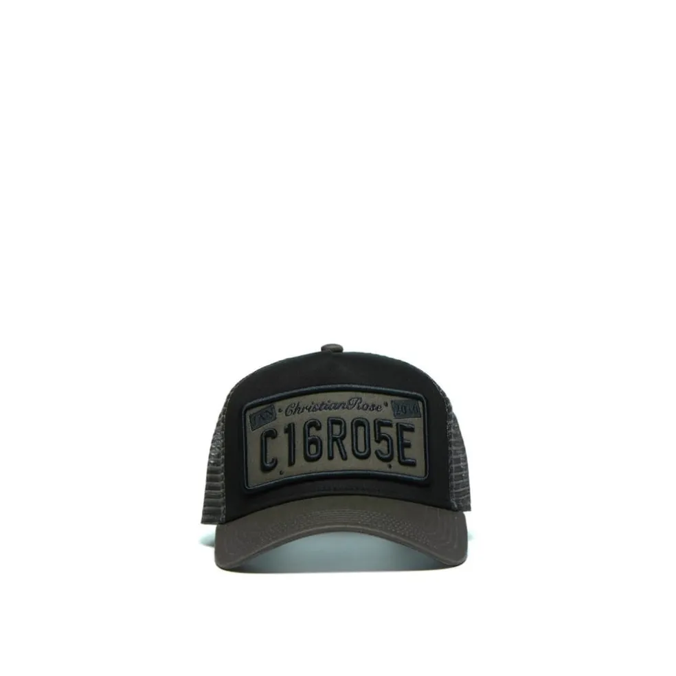 Christian Rose Plate Trucker Cap in Black