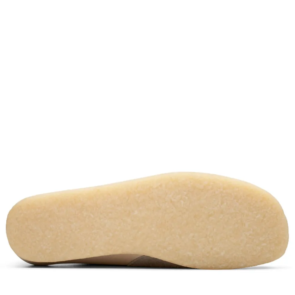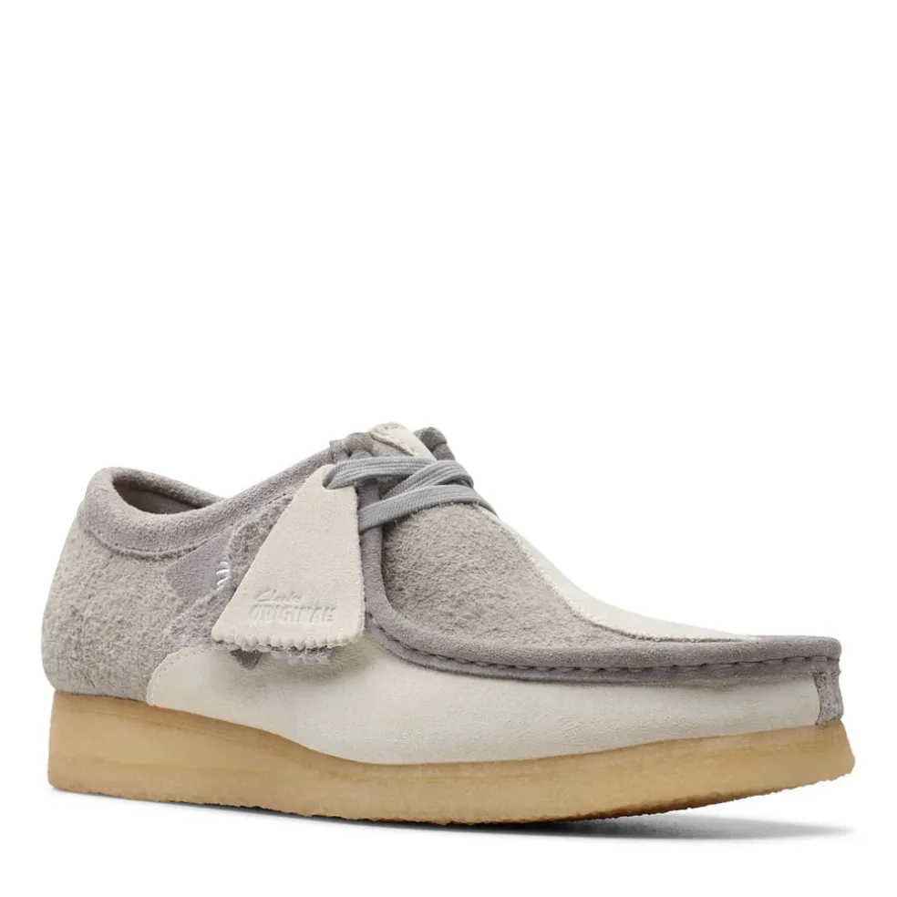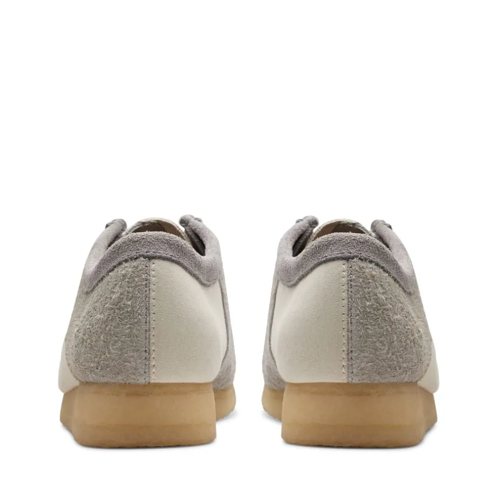 “Prepped to tackle this season and the next, our legendary Wallabee arrives with a cool grey and off white look. Crafted suede uppers make a play on luxurious texture, while each pair is perfectly balanced with our inimitable pebble crepe soles. Proving it’s all in the details, heritage stitching, tonal daisy-embroidered fobs and laces complete our stone cold classic.- Premium grey and off white suede uppers- Natural rubber pebble crepe soles- Includes additional lace for versatile wear- Finished with three Clarks Originals fobs ”