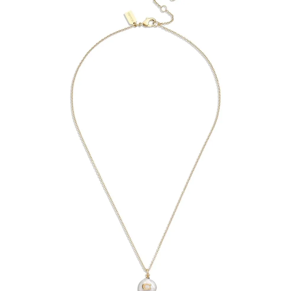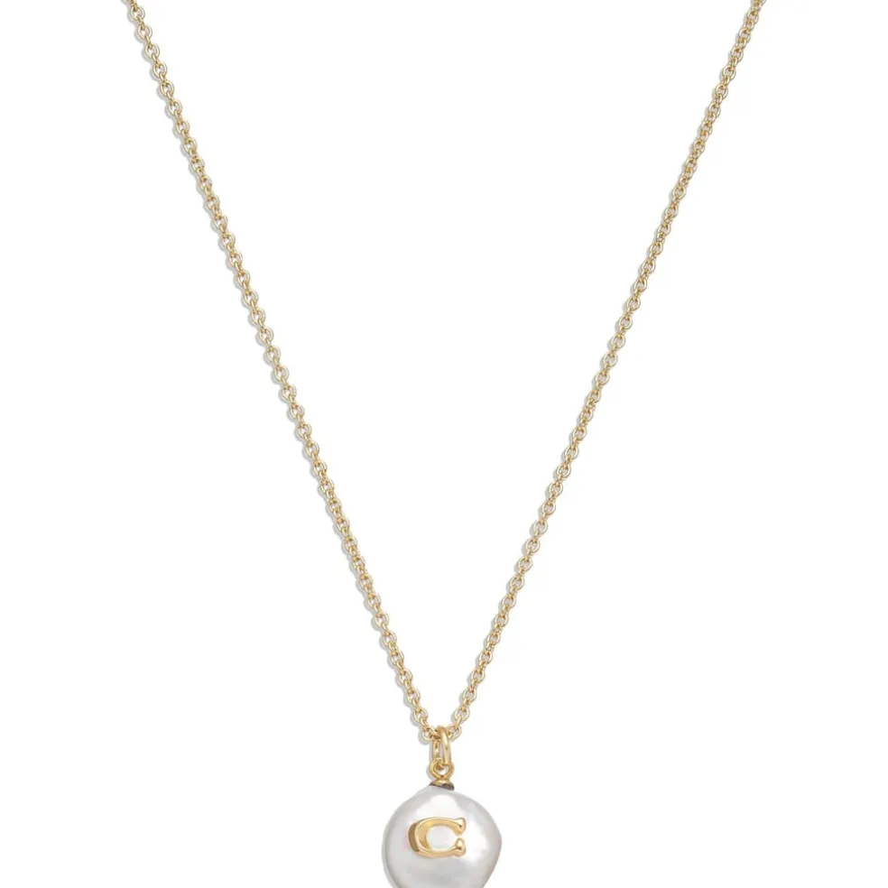 Refined chain necklace featuring freshwater coin-pearl pendant adorned with signature sculpted C. Necklace has an adjustable lobster clasp closure. Made from brass and freshwater pearl. Includes signature COACH jewelry pouch.