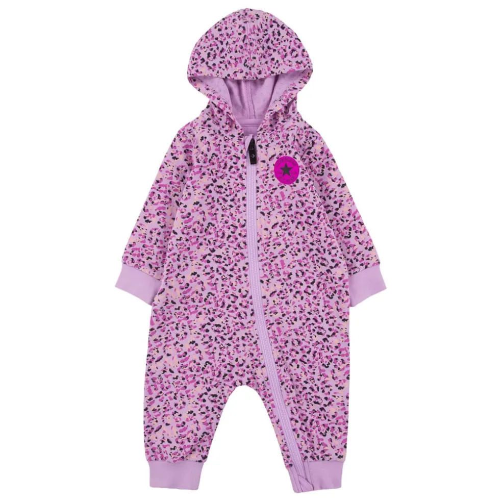 Converse Infants Allover Print Hooded Coverall in Pink