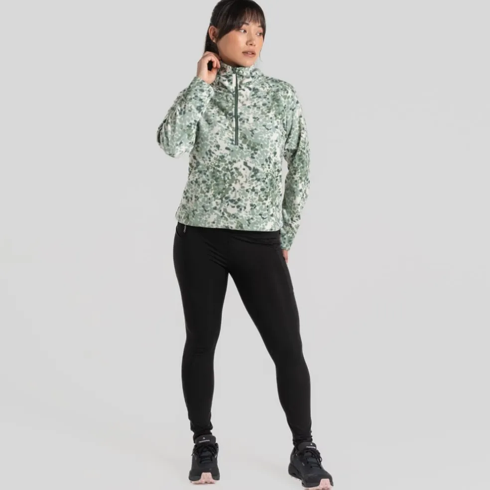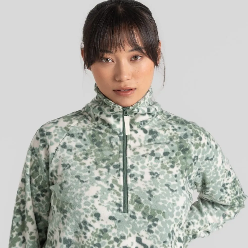 Discover the Craghoppers top, featuring a relaxed fit and long raglan sleeves. The funnel neck design is complemented by a convenient zipper closure. Adorned with an abstract pattern and a subtle logo embellishment, this top combines style and functionality effortlessly.