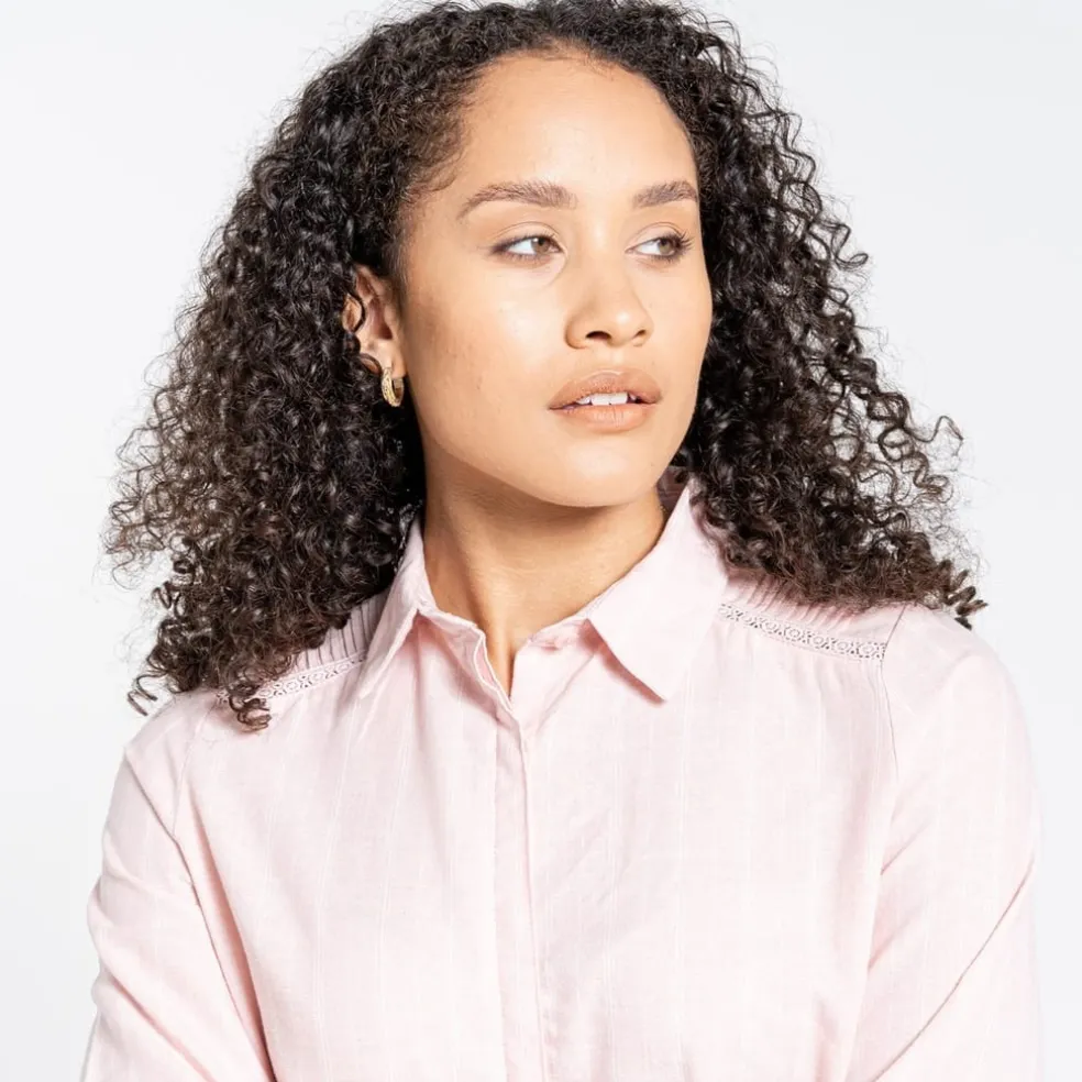 Discover the Craghoppers top, featuring a relaxed fit and a classic shirt collar. This striped design is enhanced with elegant lace detail, offering a unique touch to your wardrobe. The button closure adds a practical element to this stylish piece, making it a versatile choice for various occasions.