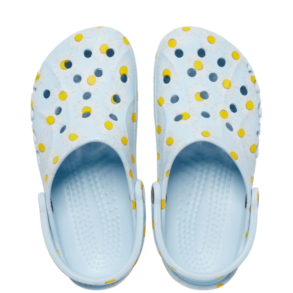 Discover the iconic Crocs clogs, a staple in comfortable shoes. These clogs feature a round toe design and a charming floral pattern, perfect for adding a touch of style to your footwear collection. Experience the unique blend of practicality and fashion with Crocs’ signature design.