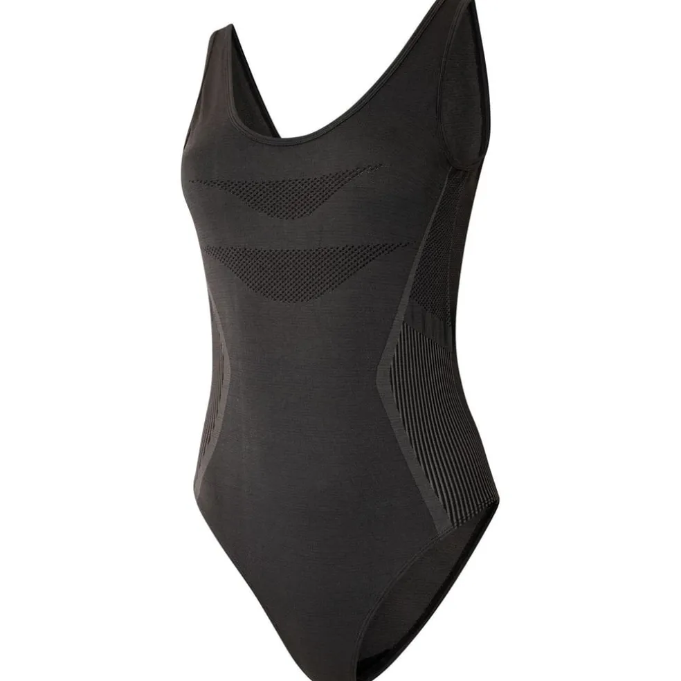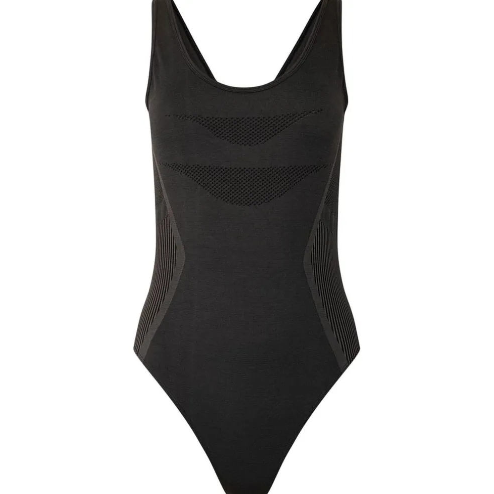 The Don’t Sweat It Swimsuit from Dare 2b. Made from recycled seamless knitted fabric with a scooped neck and back design. SeamSmart technology provides ultimate comfort as material sits smoothly on the skin. Contrast mesh detailing to flatter the figure.