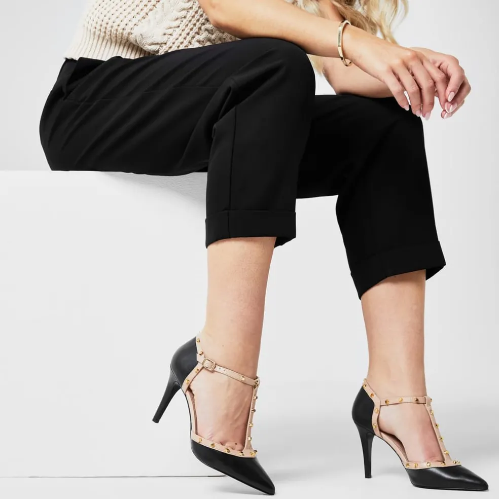 The Dune Cliopatra Heeled Sandals are a must have addition to any evening wardrobe, crafted with a buckle fastening ankle strap along with a cushioned insole that provides comfort for dancing the night away. A two tone contrasting design to upper along with studded detail to the trim gives a stylish statement look, completed with the Dune branding.