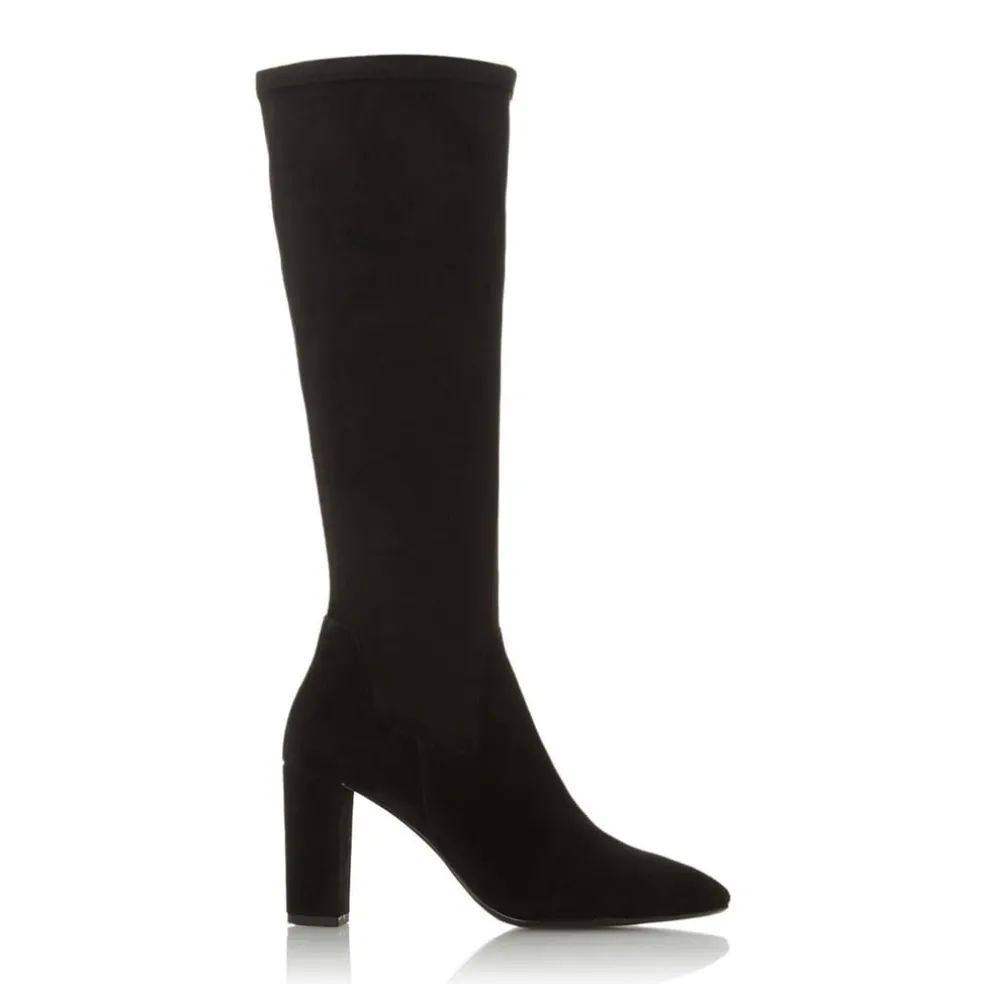 Dune London High Block Heel Pointed Toe Boots in Black