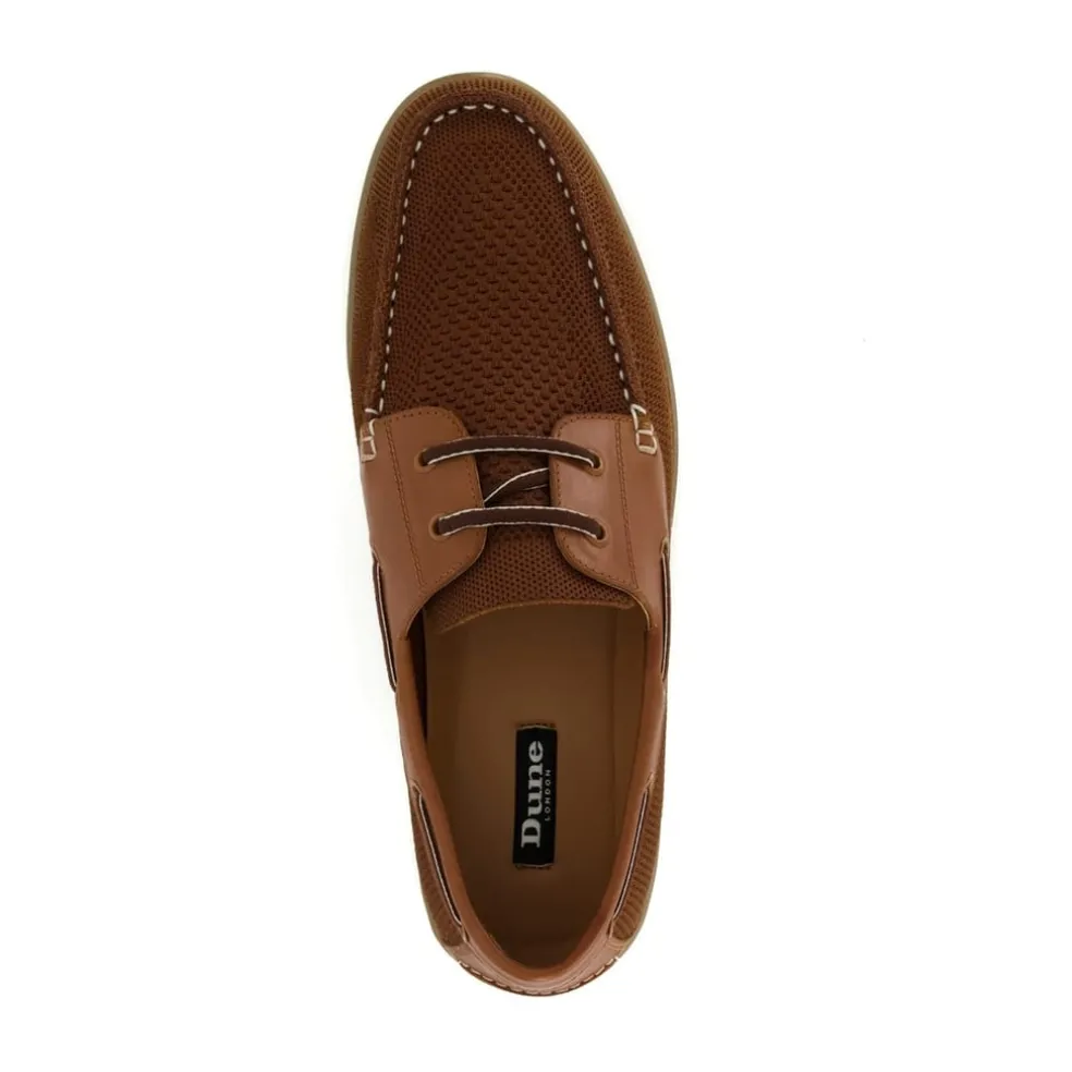 Dune London Textured Flat Heel Boat Shoes in Brown