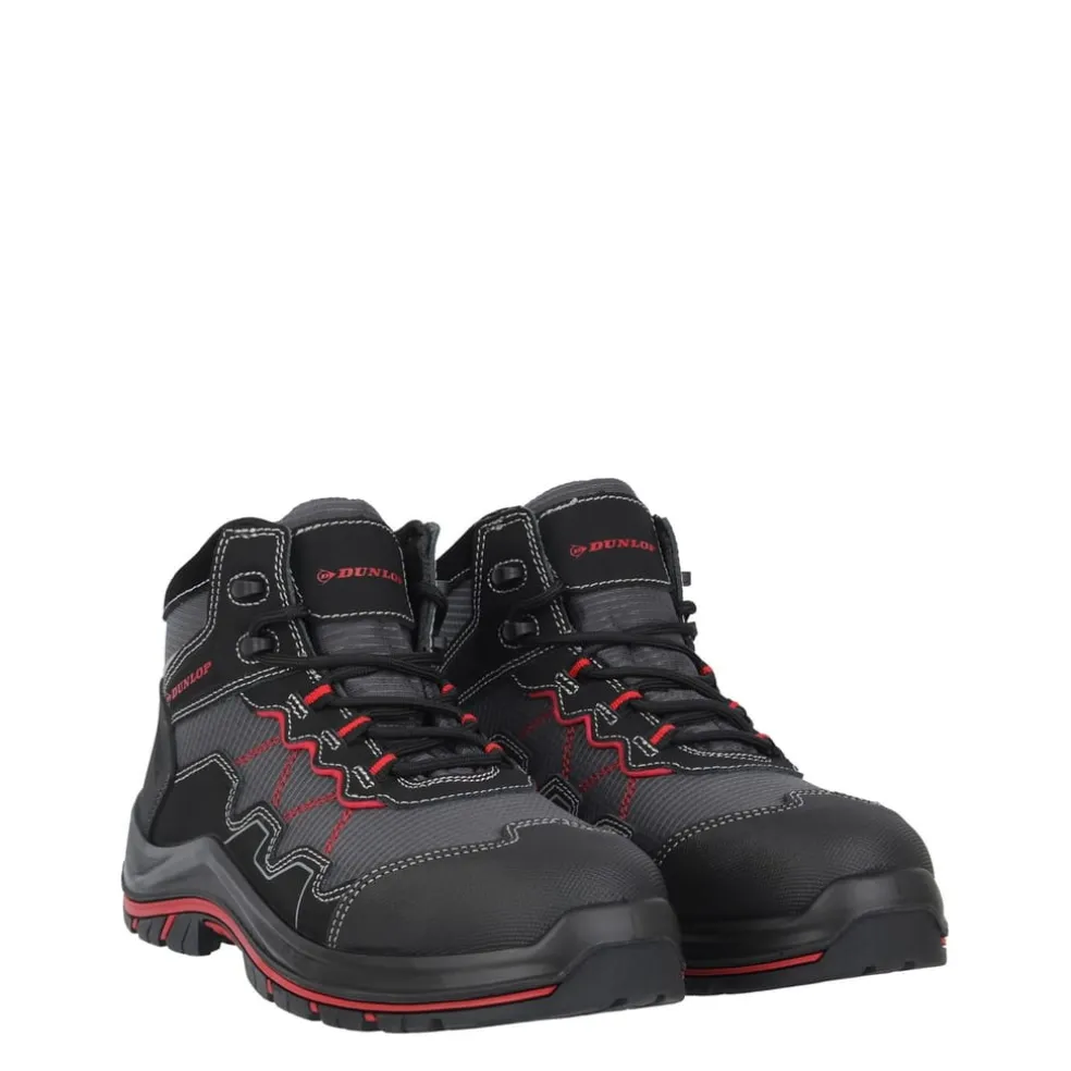 – Constructed with a black TPU toe cap, black cow split leather, and grey mesh, these boots ensure durability while maintaining breathability.