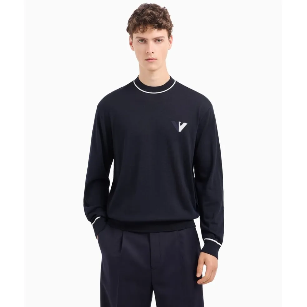 Emporio Armani EA7 Crew Neck Regular Fit Sweater in Blue