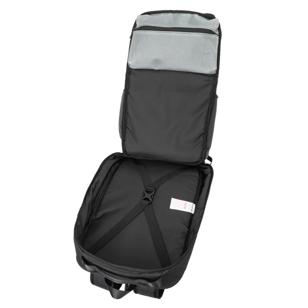 – The spacious main compartment can be opened like a suitcase, with two thoughtfully-designed pockets that keep all your essentials organized.