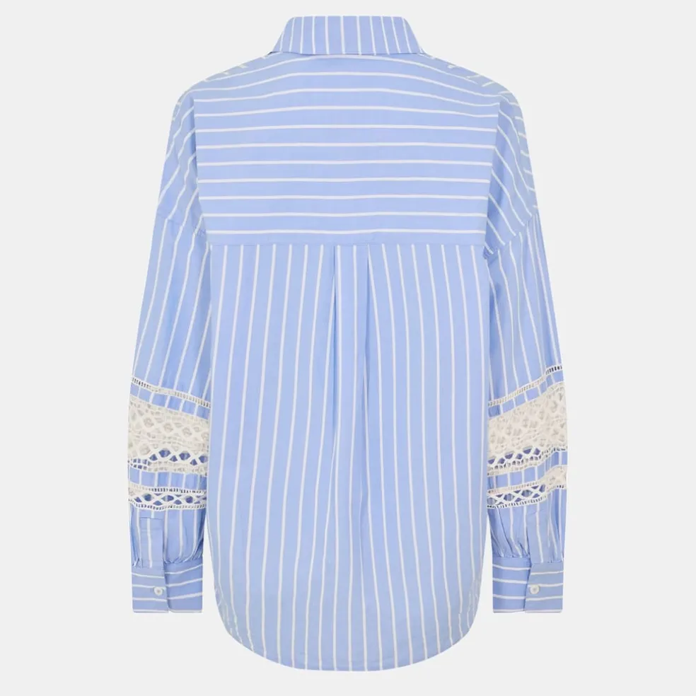 French Connection Stripe Embroidered Shirt in Blue