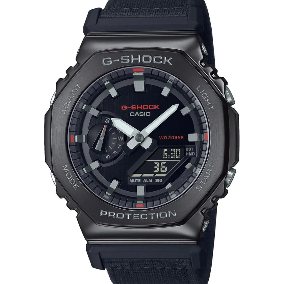 Introducing the new Utility Metal GM-2100 models with octagonal metal- covered designs. Combining steel and an ultra adaptable cloth strap these timepieces evoke a tough yet casual image refined with a sophisticated colour matched edge. Issued in a variety of utility inspired colours, these watches are built to match style with substance.