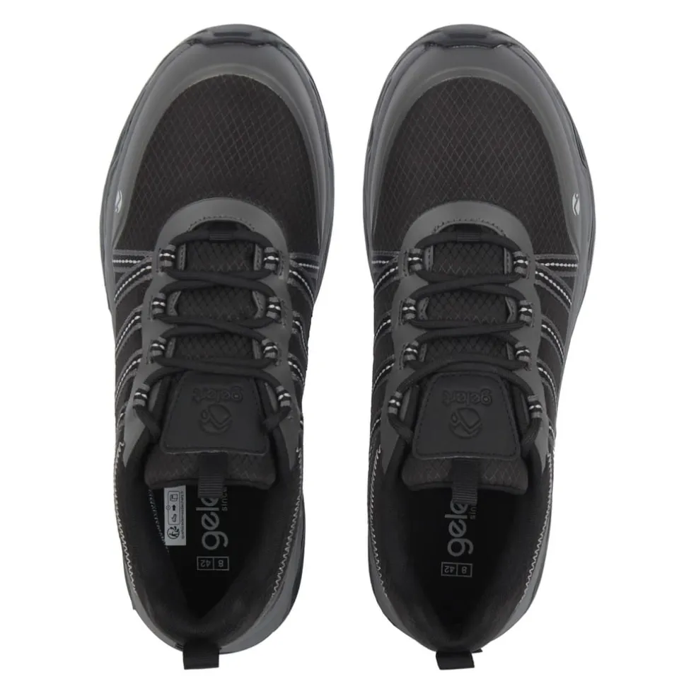 Built for the outdoors, the Gelert Glen is a rugged men’s shoe designed to handle tough terrain and unpredictable weather. Featuring a breathable mesh upper for comfort, the shoe includes supportive webbing integrated into the lacing system to ensure a secure, locked-in fit. The upper is reinforced with hotmelt overlays for added durability and structure, while the waterproof membrane keeps your feet dry in wet conditions. A deep rubber lug outsole delivers reliable traction across various surfaces, making it ideal for hiking, trail walking, and other outdoor adventures.