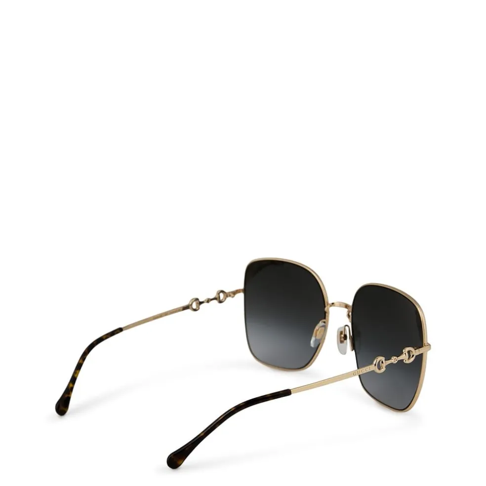 – Iconic horse bit embellishment at the temple: pays homage to Gucci’s original equestrian embellishments.