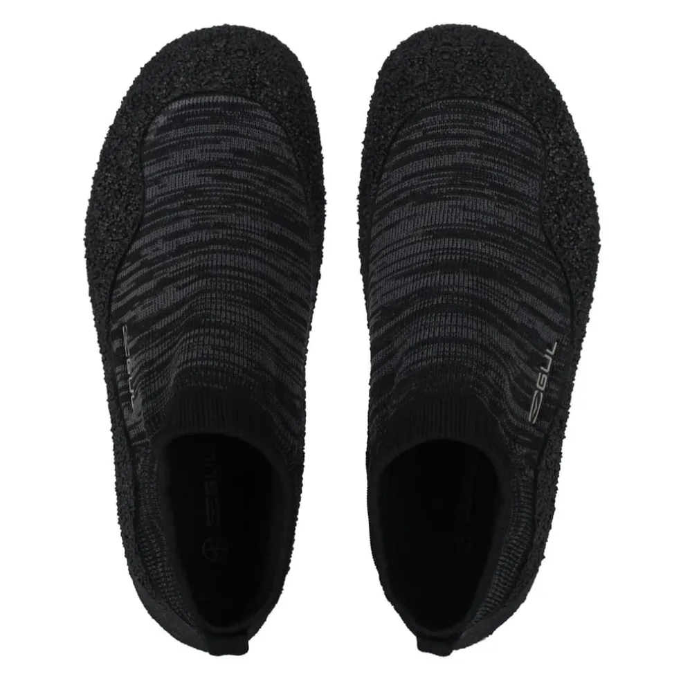 Designed for protection in and out of the water, this low profile silhouette has been crafted from a soft fabrication designed to hug the feet for ultimate comfort and a skin-like feel. Set upon a textured sole for underfoot cushioning and stability on slippy surfaces, this pair offer a ribbed cuff with a small pull cord for an easy on and off fit. Styled with a monochromatic finish, this pair offer Gul branding for a designer stamp.