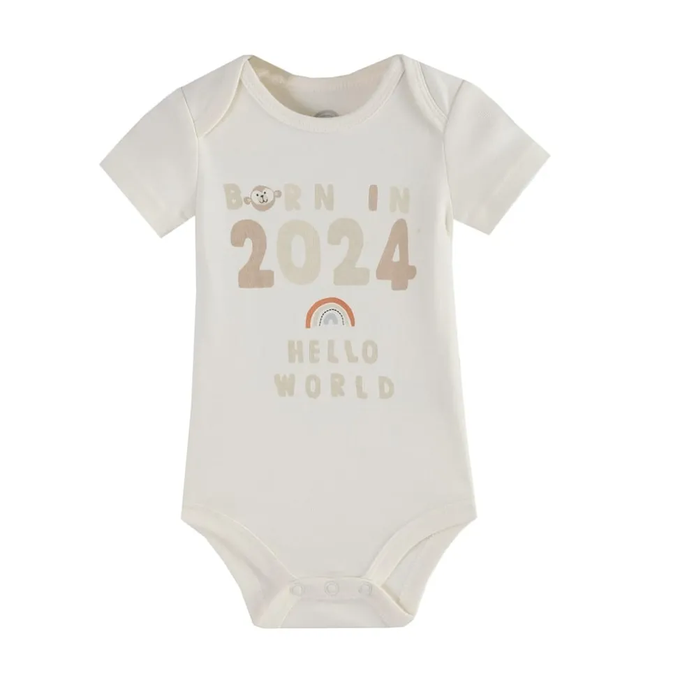 Hello World 2024 Short Sleeve Bodysuit in Neutral
