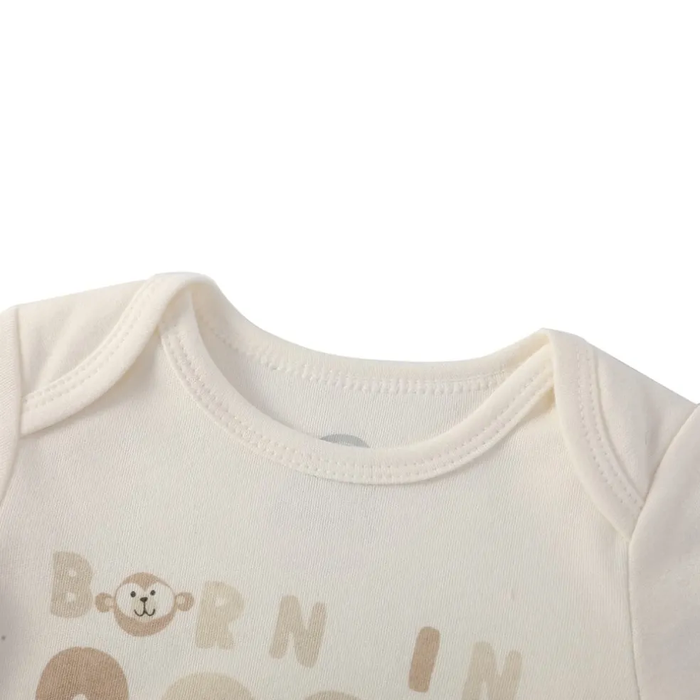 Introduce your baby to style with the Hello World bodysuit. This top features a playful graphic print and a comfortable crew neck. Designed with short sleeves and a regular fit, it ensures ease of movement. Perfect for little ones, this set is a delightful addition to their wardrobe.