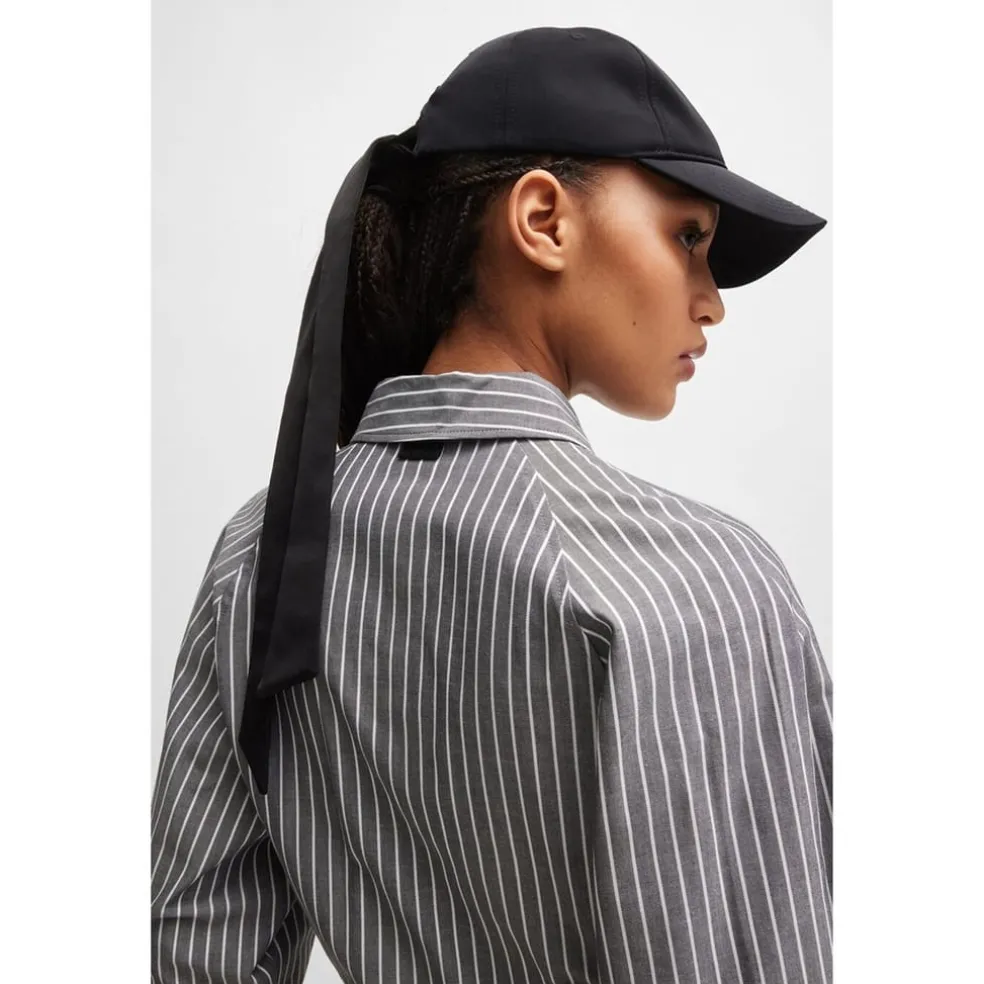 – Decorated in a solid block colour, this taffeta baseball cap styles effortlessly into any ensemble, with a subtle, tonal HUGO logo embroidered at the rear, Finishing the look is a striking satin tie fastening that adds a chic and feminine charm to the design. Whether lounging by a hotel pool or exploring the sights, smells and sounds of a music festival, the Ally Bow Baseball Cap from HUGO is the perfect choice.