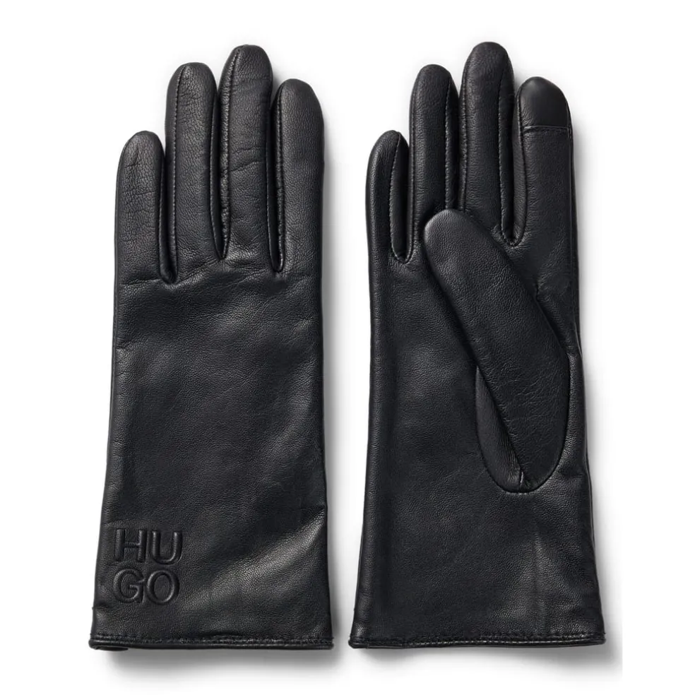 Leather gloves with HUGO stacked logo / touch tech fingertips / warm fleece as lining