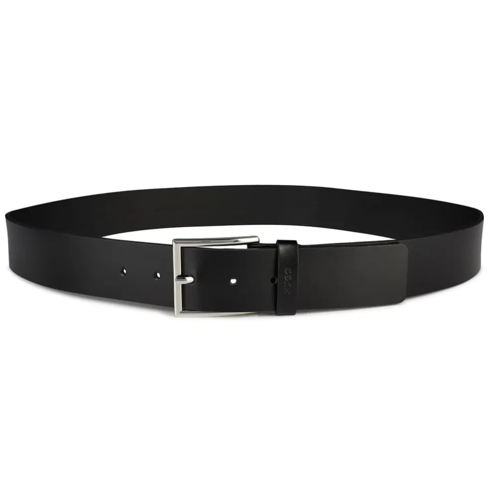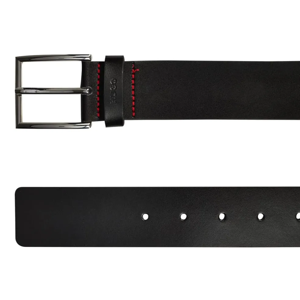 Finish your everyday style with this Giaspo Belt from Boss. Crafted from smooth and shiny leather, this style then further features a metal buckle and red contrast stitching. Perfect for completing your going out ensemble.