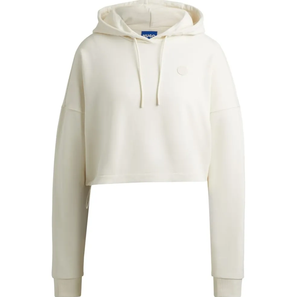 Hugo Cropped Hooded Relaxed Fit Sweatshirt in White