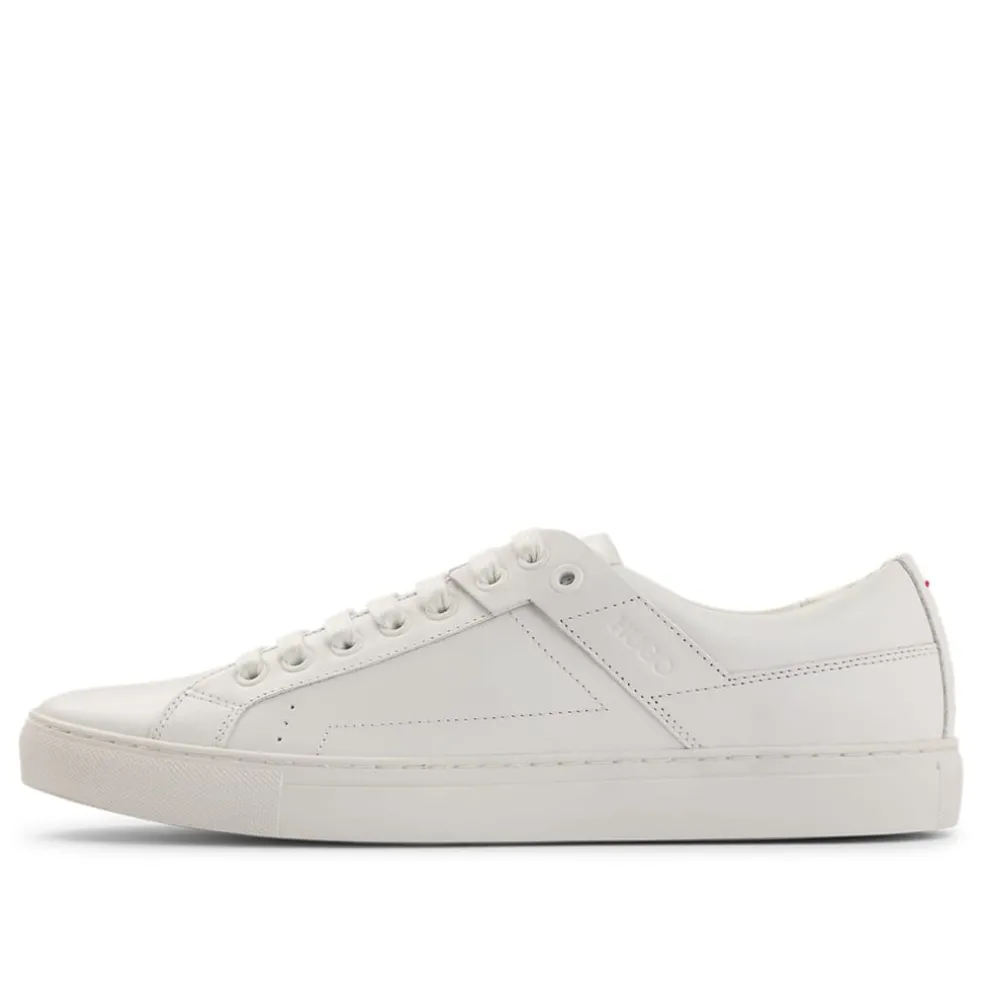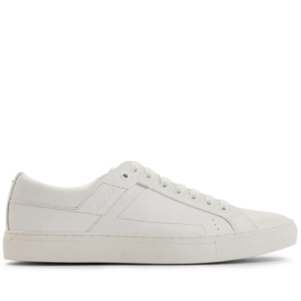 Minimalist cupsole trainers by HUGO, designed in smooth leather with a lace-up closure, subtle branding and signature stitching.