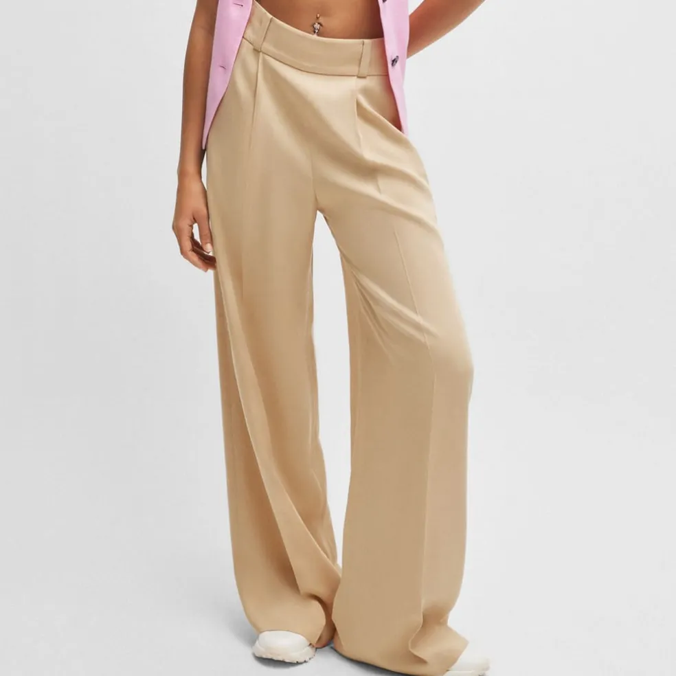 High-waisted trousers by HUGO Womenswear, cut to a relaxed fit with a wide leg in soft twill with a fluent drape.