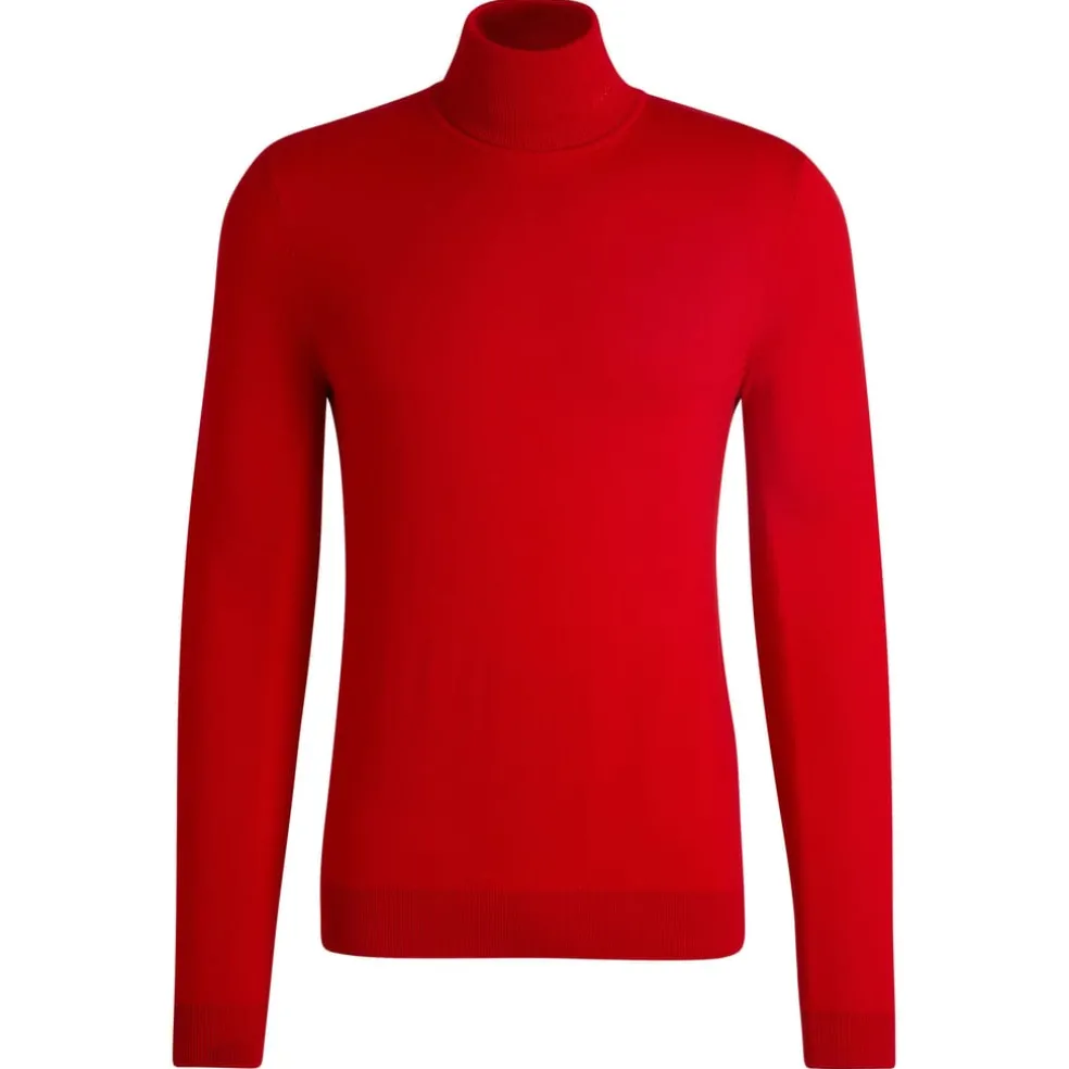 long sleeve knit / HUGO logo embroidery / turtle neck / french shoulder / extrafine merino basics / RESPONSIBLE / responsible wool